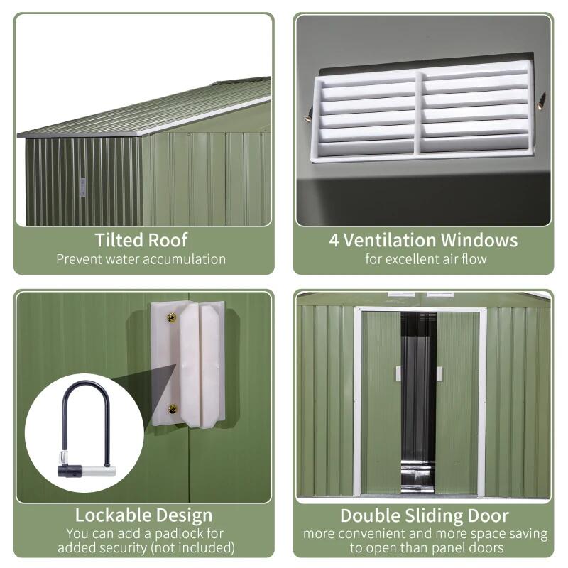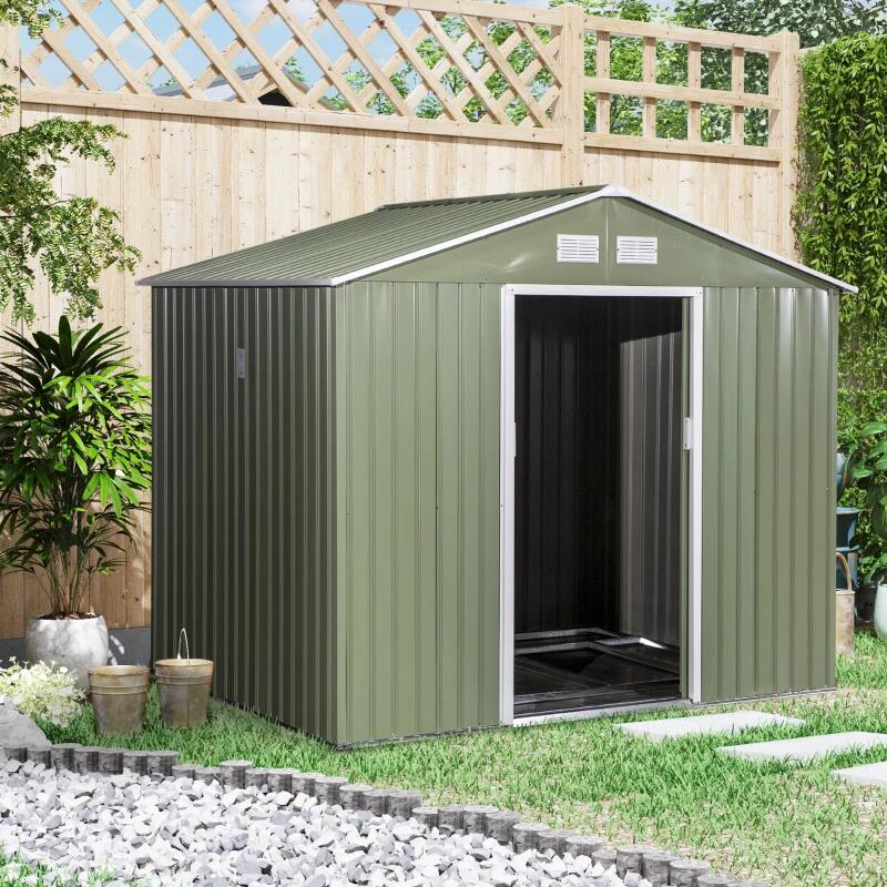 Kerti fészer/tároló fészer szerszámok tárolására, alapszerkezettel, acél és PP, khaki zöld, 277x195x192 cm