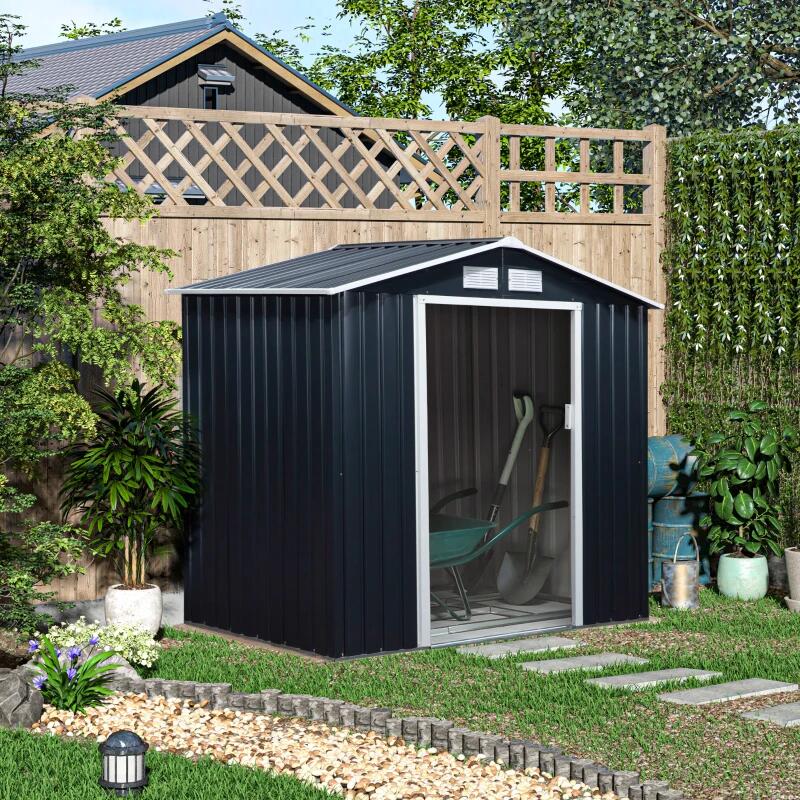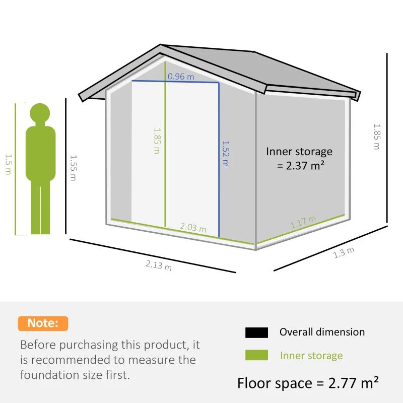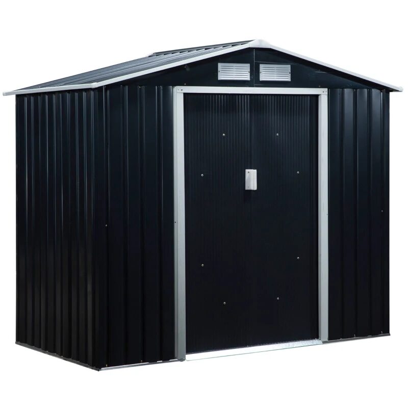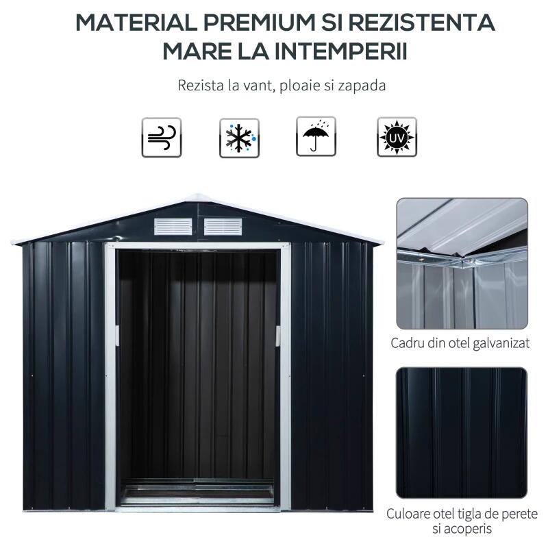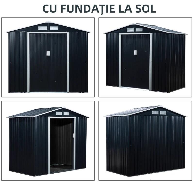 Kerti fészer/tároló fészer szerszámok tárolására, alapszerkezettel, acél és PP, sötétszürke, 213x130x185 cm