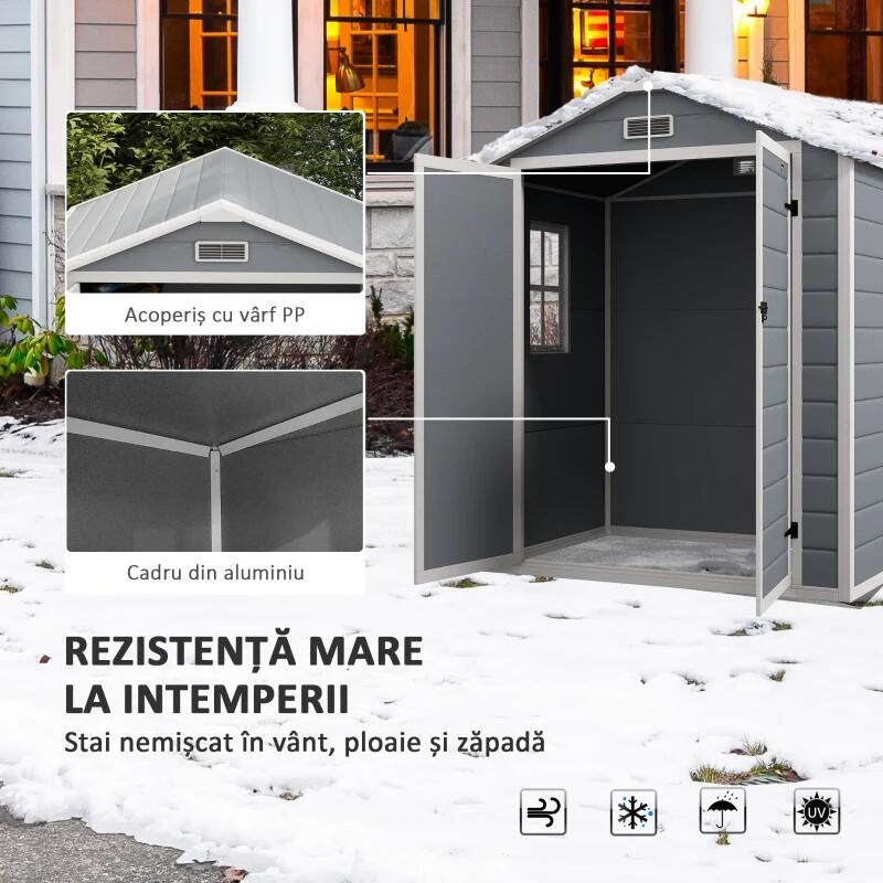 Kerti fészer/tároló fészer szerszámok tárolására, alumínium és PP, kesztyűvel, zárral és kulccsal, szürke, 183x134x210 cm