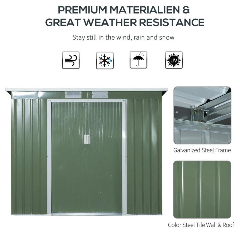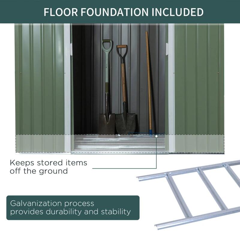Kerti fészer/tároló/tároló fészer szerszám tárolására, alapszerkezettel, acél, zöld, 213x130x173 cm