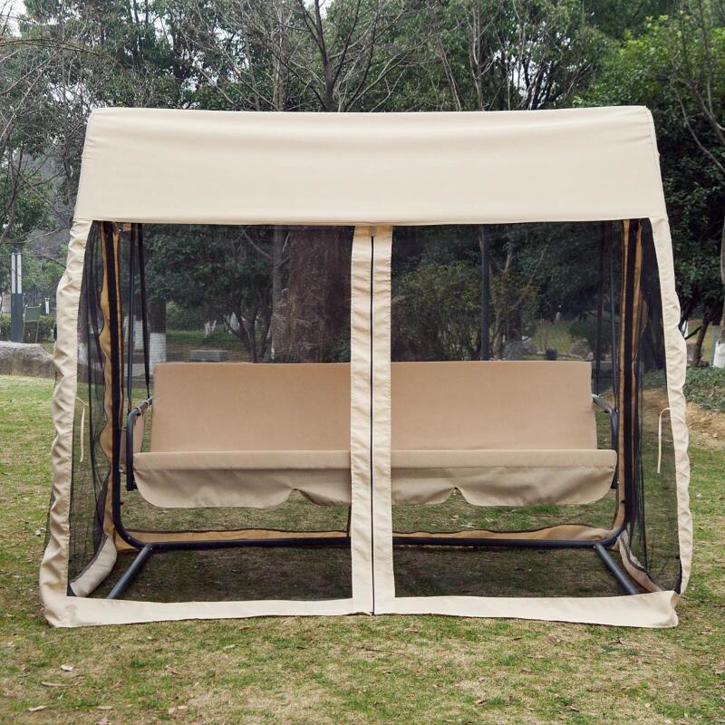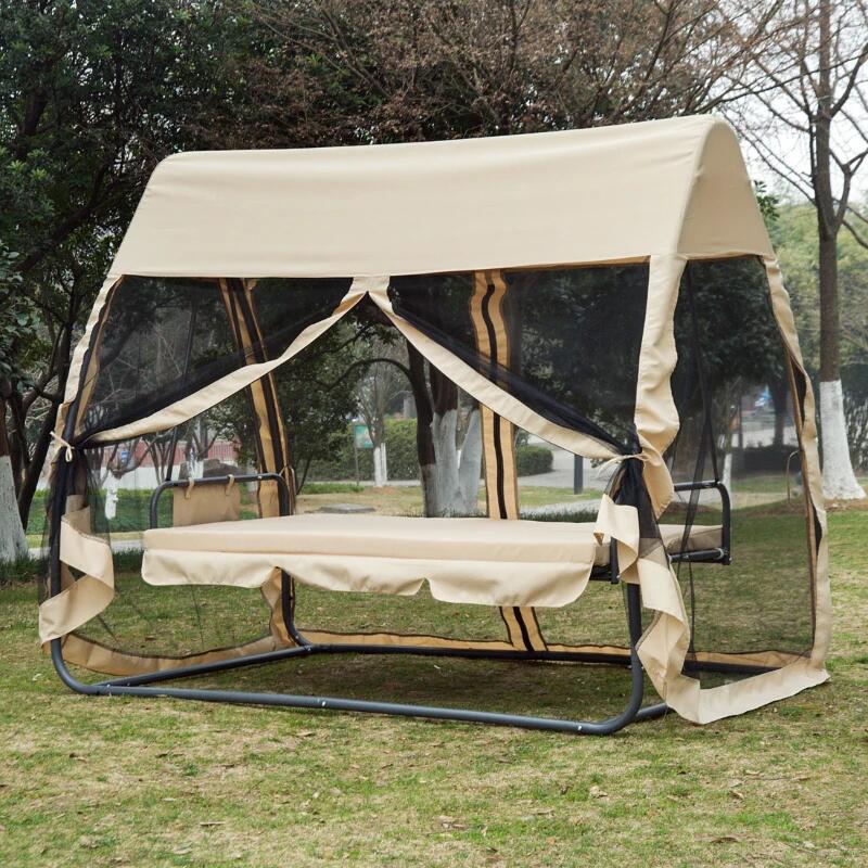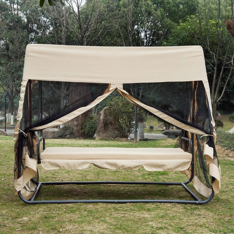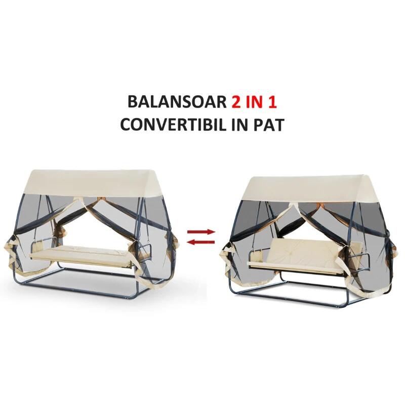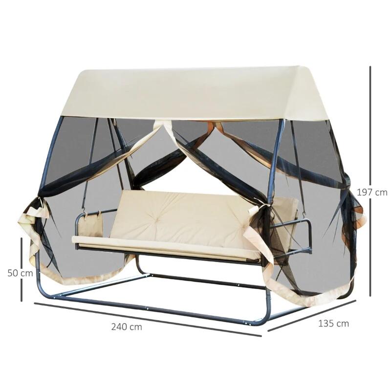 Kerti hinta, 3 férőhelyes, rovarhálóval, krém, 240x135x197 cm, ágyfunkciós, max 300 kg, Madeira