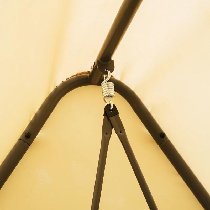 - A tető kiváló minőségű anyaga, erős és vízálló, védelmet nyújt a kedvezőtlen időjárási viszonyok, például eső vagy UV-sugárzás ellen. Ezenkívül védelmet nyújt a rovarok, például szúnyogok vagy legyek ellen is a beépített hálónak köszönhetően, amely a teljes szerelvényt befedi a maximális ellazulás érdekében. A háló mindkét oldalán cipzárral van ellátva, és olyan anyagból készült, amely biztosítja az optimális szellőzést.