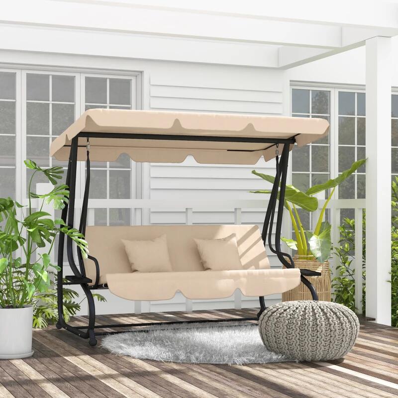 Kerti hinta, 3 férőhelyes, világosbarna, 200x120x164 cm, ágyfunkciós, max 340 kg, Tripoli