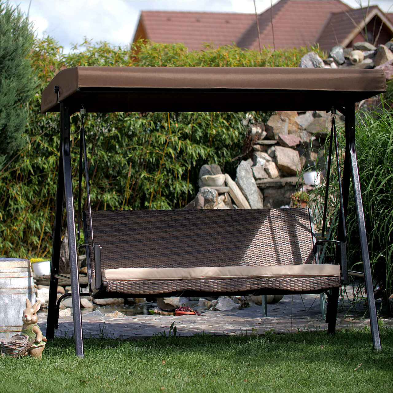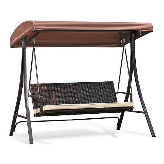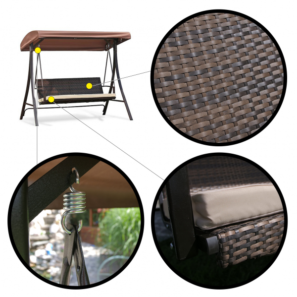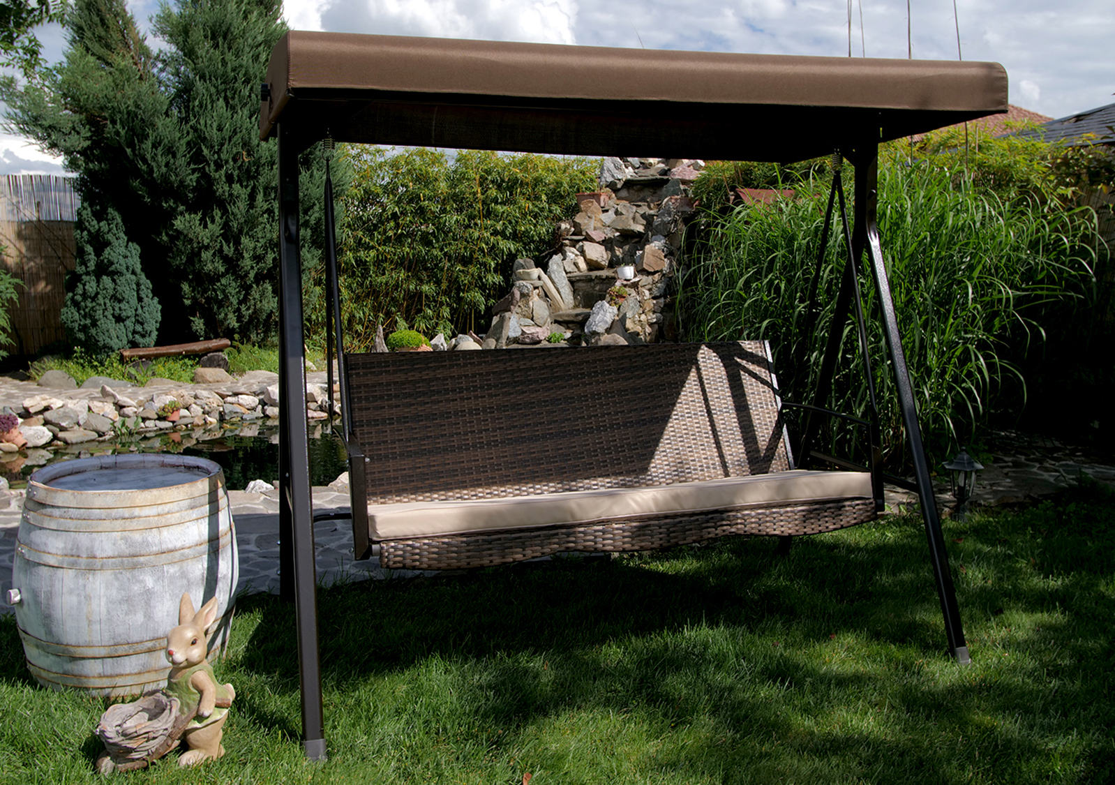 - Az egyik legjobb választás a háromüléses, szintetikus rattan háttámlával ellátott hintaszék, amely a megfelelő választás a kikapcsolódáshoz, olvasáshoz vagy csak a szeretteivel való időtöltéshez.