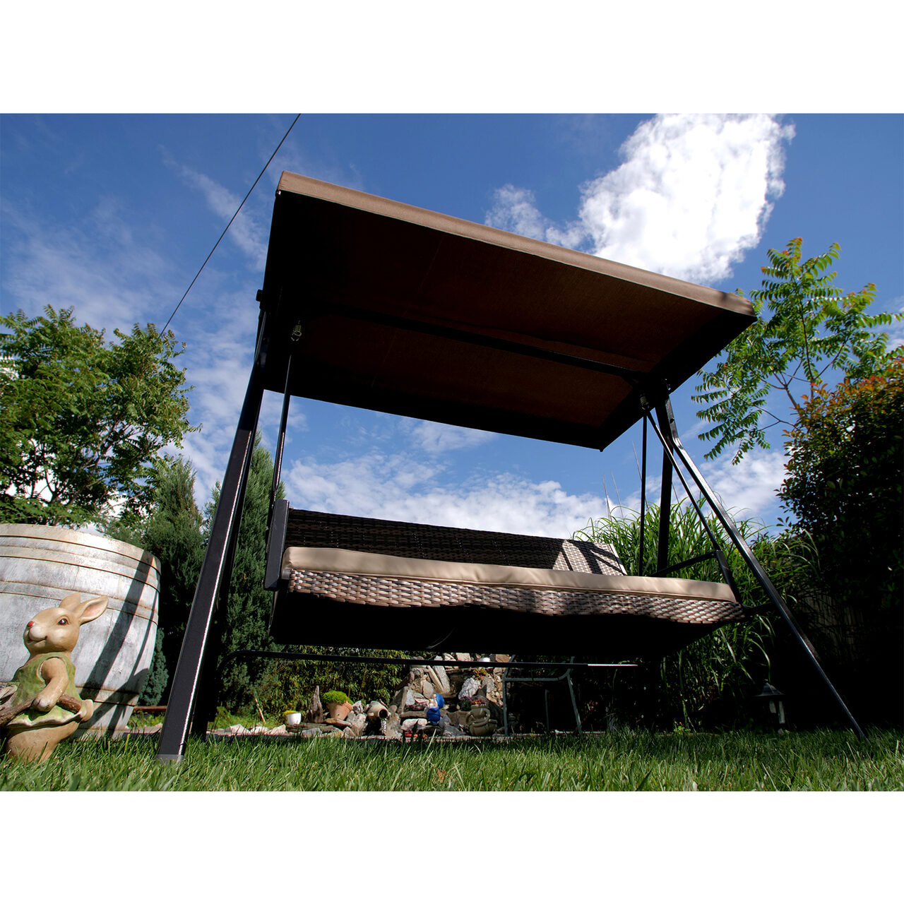 Kerti hinta, 3 üléses, barna, szintetikus rattan, 201x122x182 cm