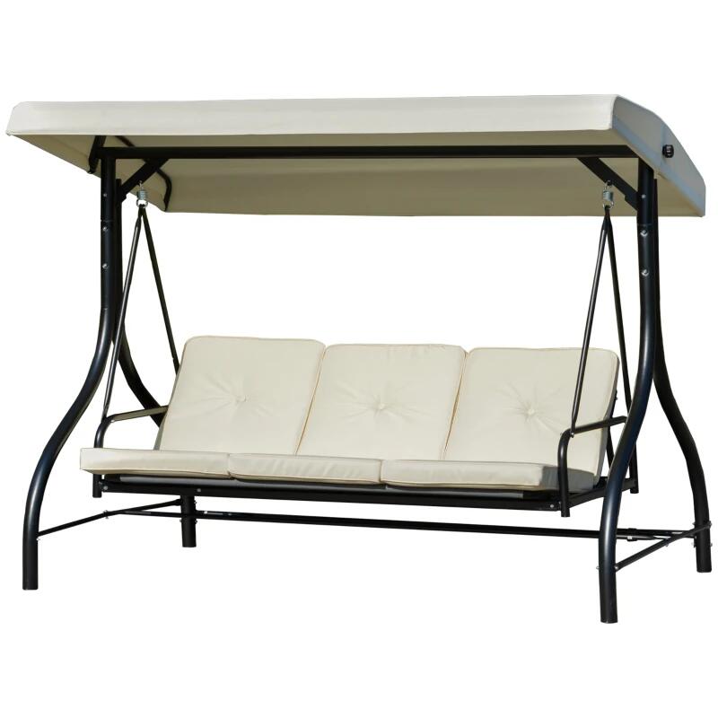 Kerti hinta, 3 üléses, bézs, 195x117x174 cm, ágy funkció, párnázott párnák, max 240 kg, Louisiana