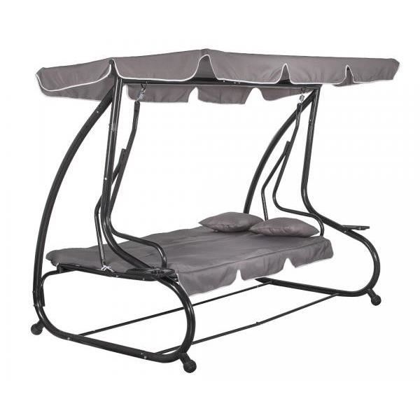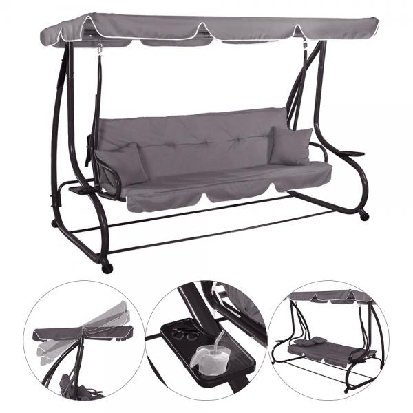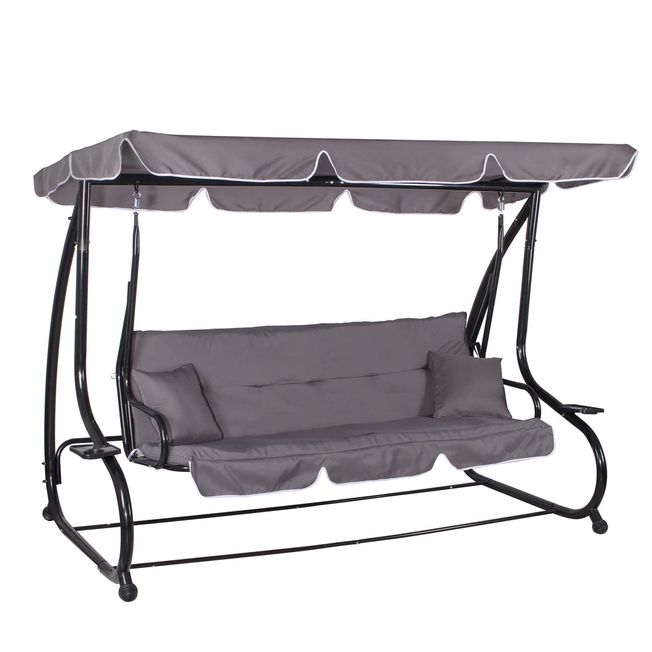 Kerti hinta, 4 üléses, szürke, 220x120x162 cm, ágy funkció, Linda