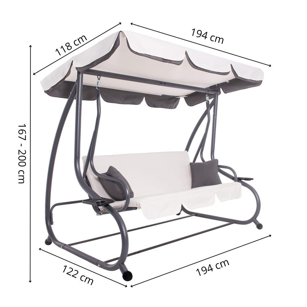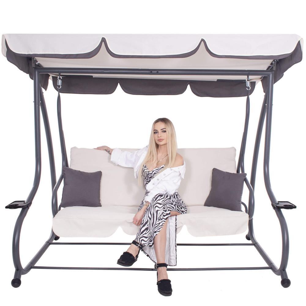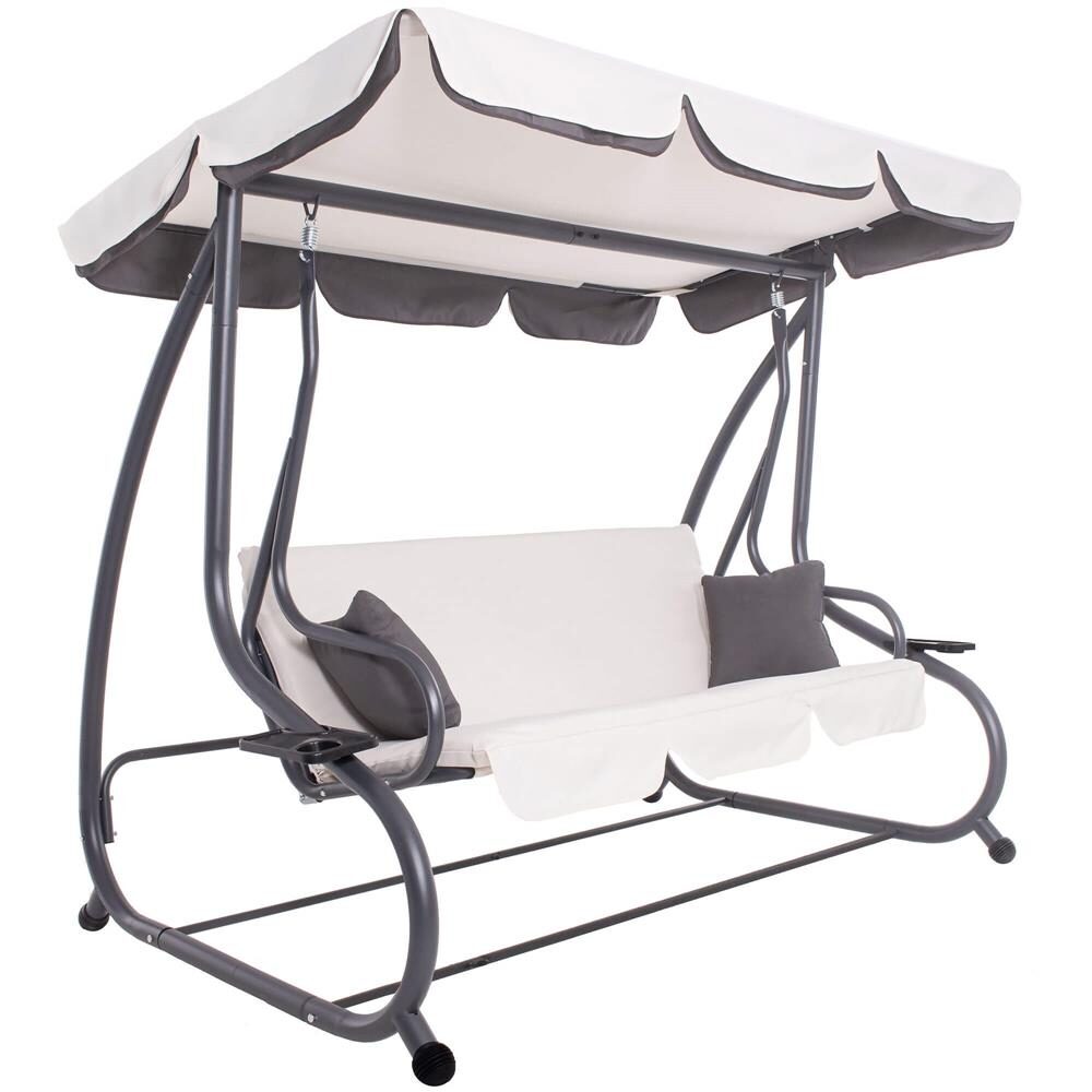 Kerti hinta, Springos, 3 férőhelyes, ekrü és szürke, 210x126x200 cm, ágyfunkciós, max 280 kg, Venetia