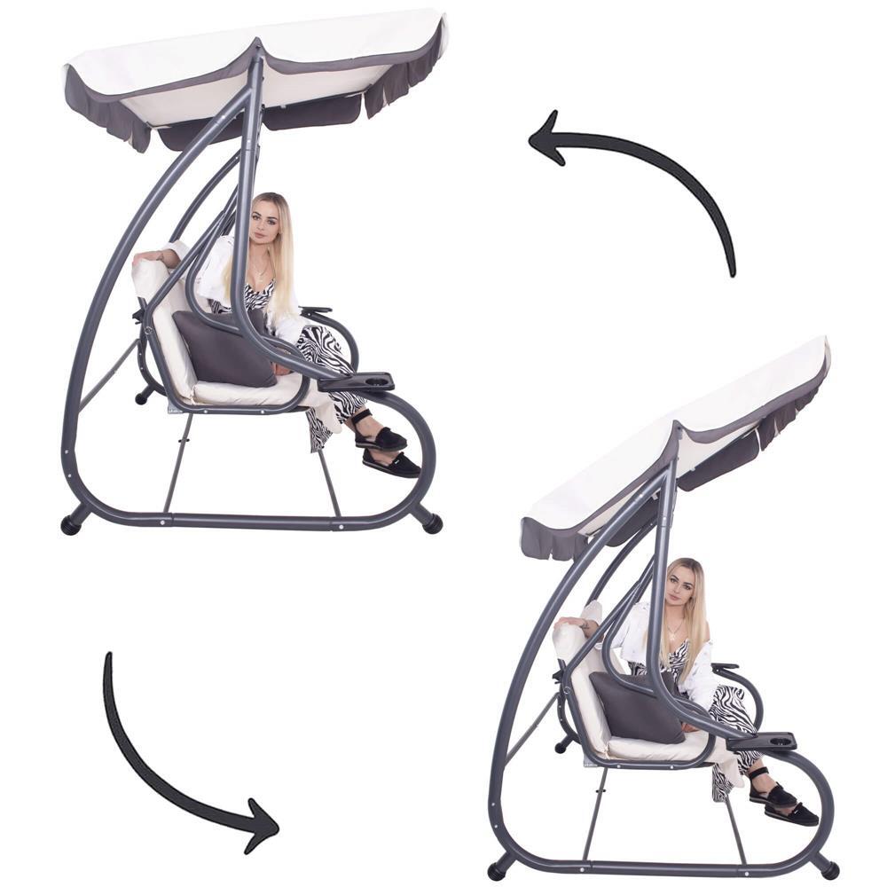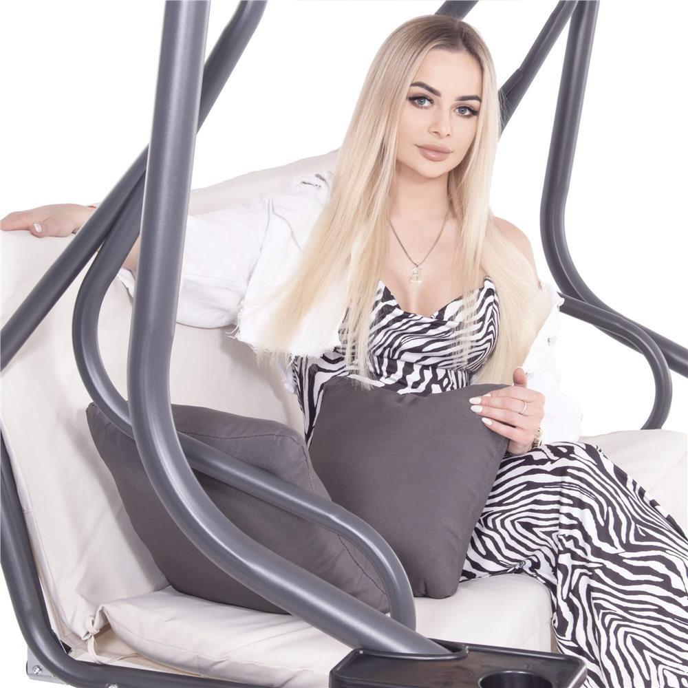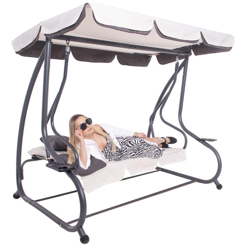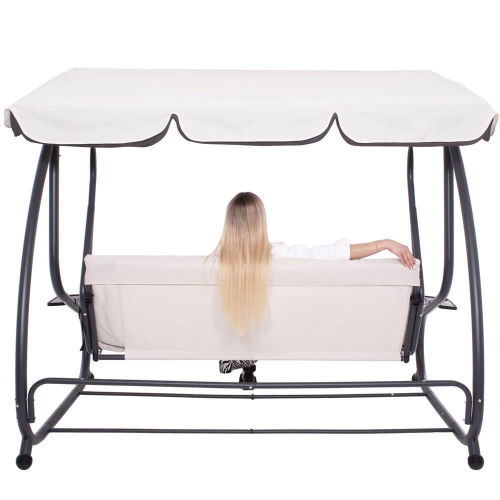 Kerti hinta, Springos, 3 férőhelyes, ekrü és szürke, 210x126x200 cm, ágyfunkciós, max 280 kg, Venetia