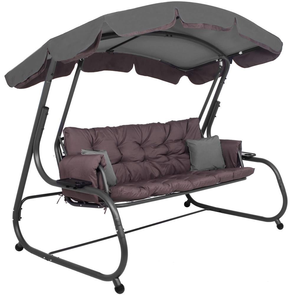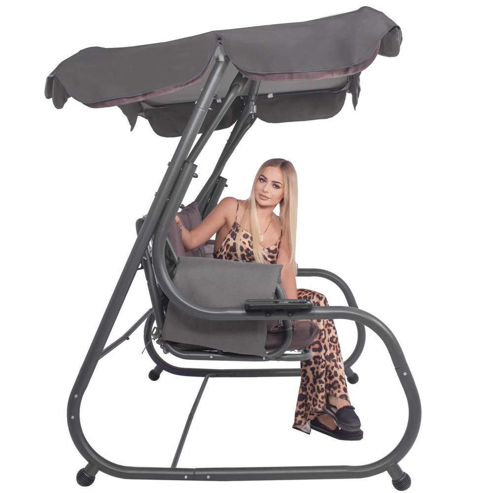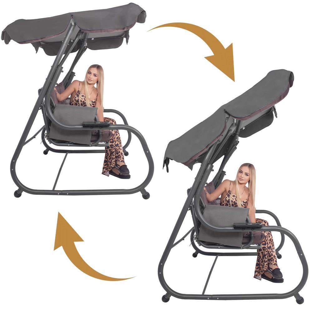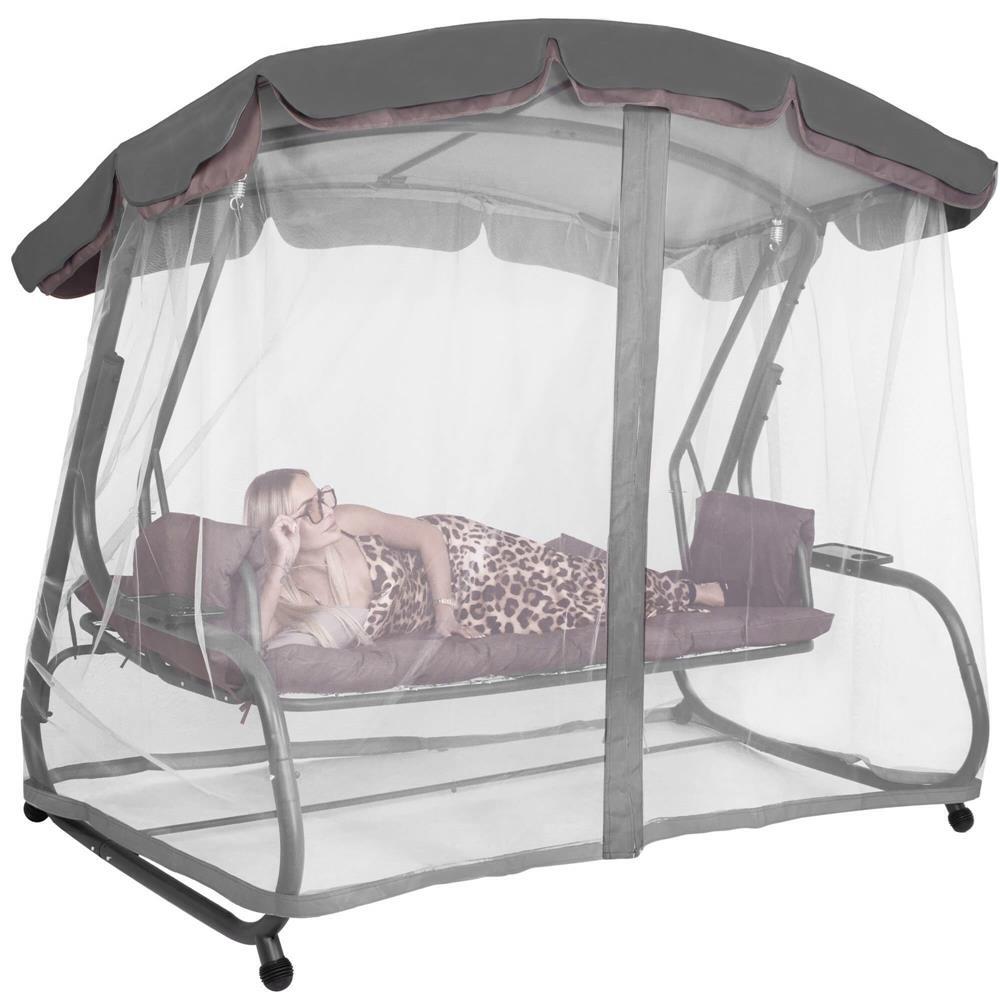 Kerti hinta, Springos, 3 férőhelyes, rovarhálóval, szürke és barna, 226x126x192 cm, ágyfunkciós, párnák, max 260 kg, Diana