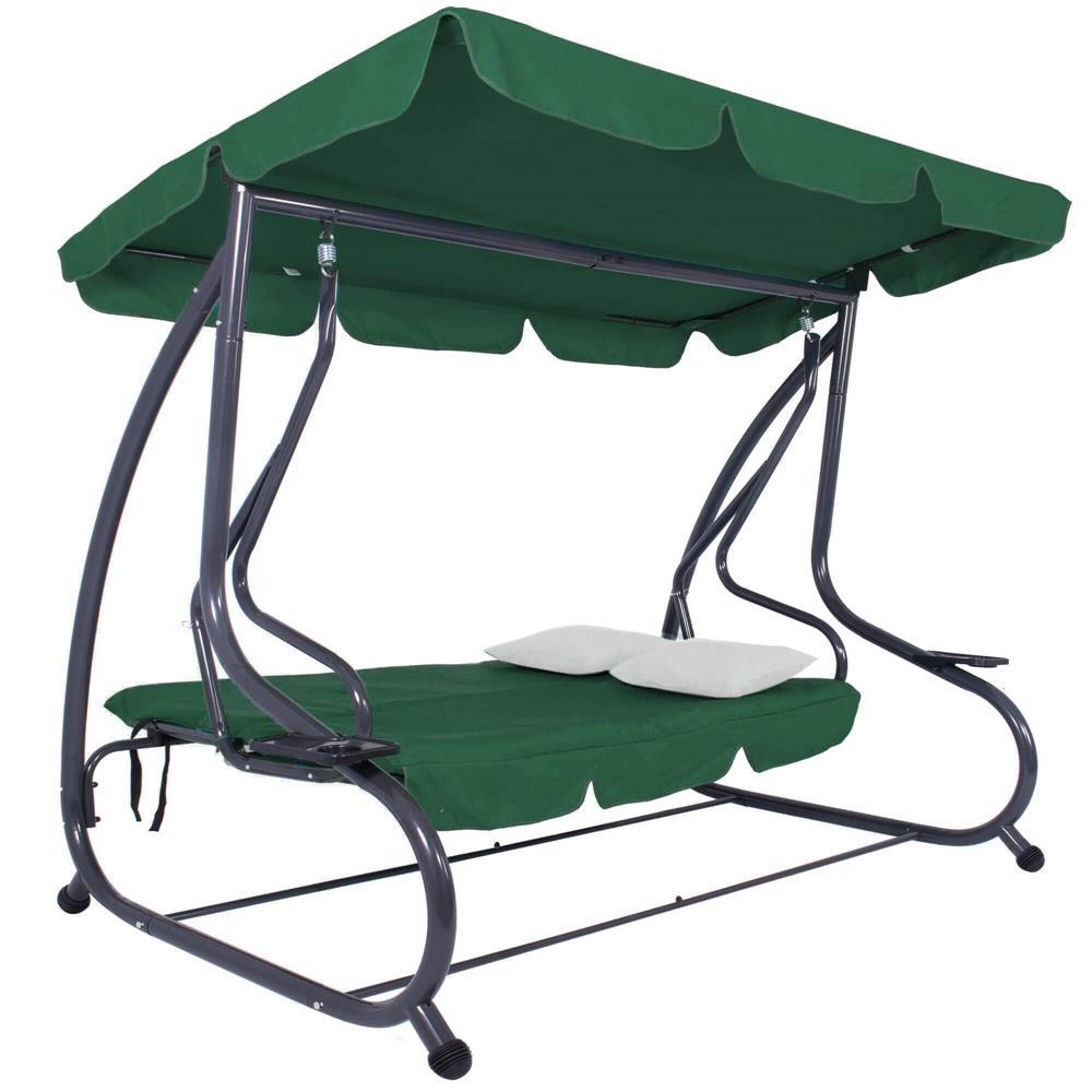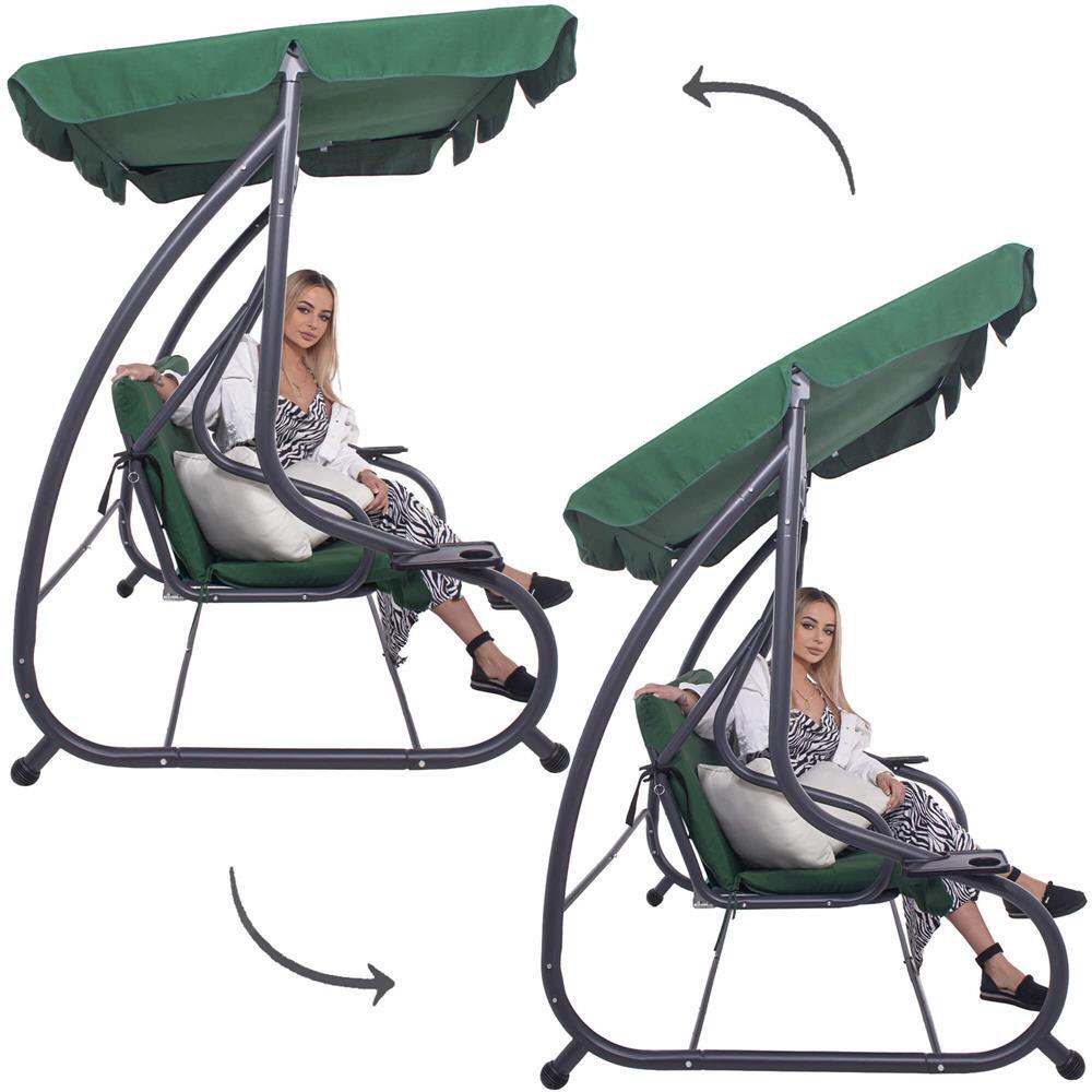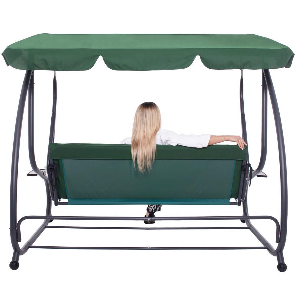 Kerti hinta, Springos, 3 férőhelyes, zöld, 210x126x200 cm, ágyfunkciós, max 280 kg, Venetia