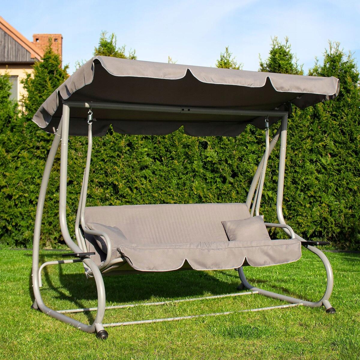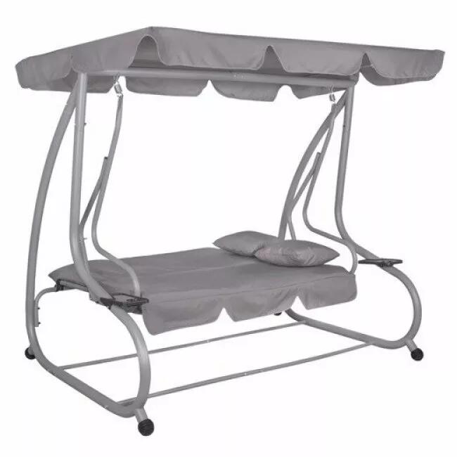 Kerti hinta, Springos, Venezia, 3 férőhelyes, szürke, 190x125x163 cm, ágy funkció, max 280 kg