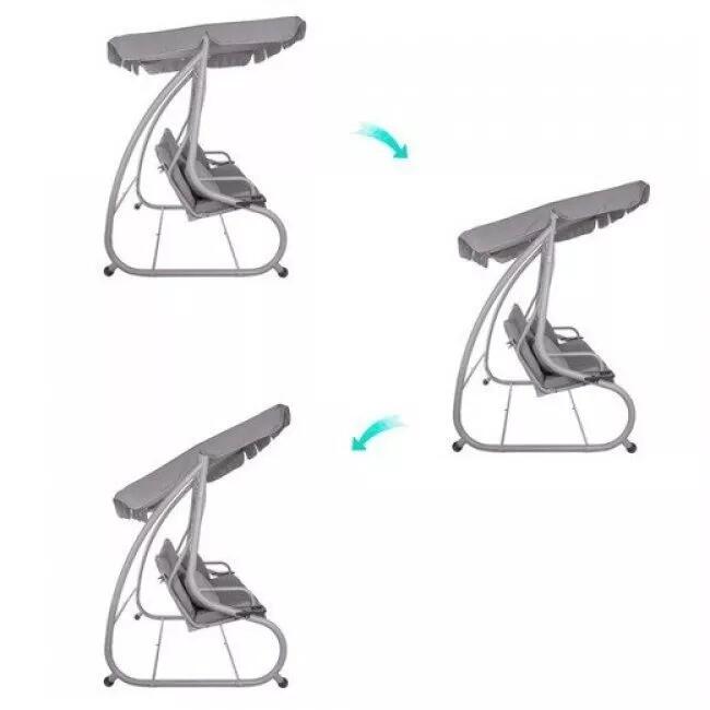- Ágynak is használható, az ülés teljesen vízszintes helyzetbe állítható a kellemes pihenéshez a friss levegőn, természettel körülvéve. A kispárnák, amelyekkel a hintaszék fel van szerelve, a fej alá helyezhető a maximális kényelem érdekében alvás vagy olvasás közben.