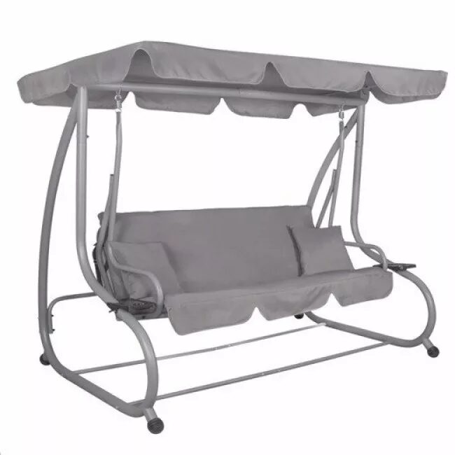 Kerti hinta, Springos, Venezia, 3 férőhelyes, szürke, 190x125x163 cm, ágyfunkciós, max 280 kg