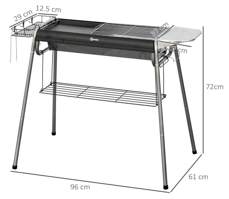 - Könnyen felszerelhető és gyorsan szétszerelhető, levehető lábakkal rendelkezik. Pontosan kompakt kialakítású, hogy a lehető legegyszerűbben szállítható és tárolható legyen, így bárhol és bármikor élvezheti a grill előnyeit. Az állítható lábtámaszok megőrzik a stabilitást és megakadályozzák a karcolásokat, amelyek például aszfaltozott vagy macskaköves talajon keletkezhetnek.