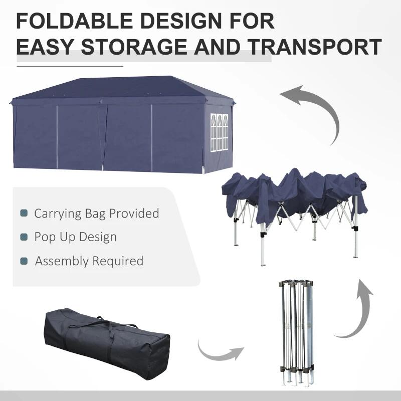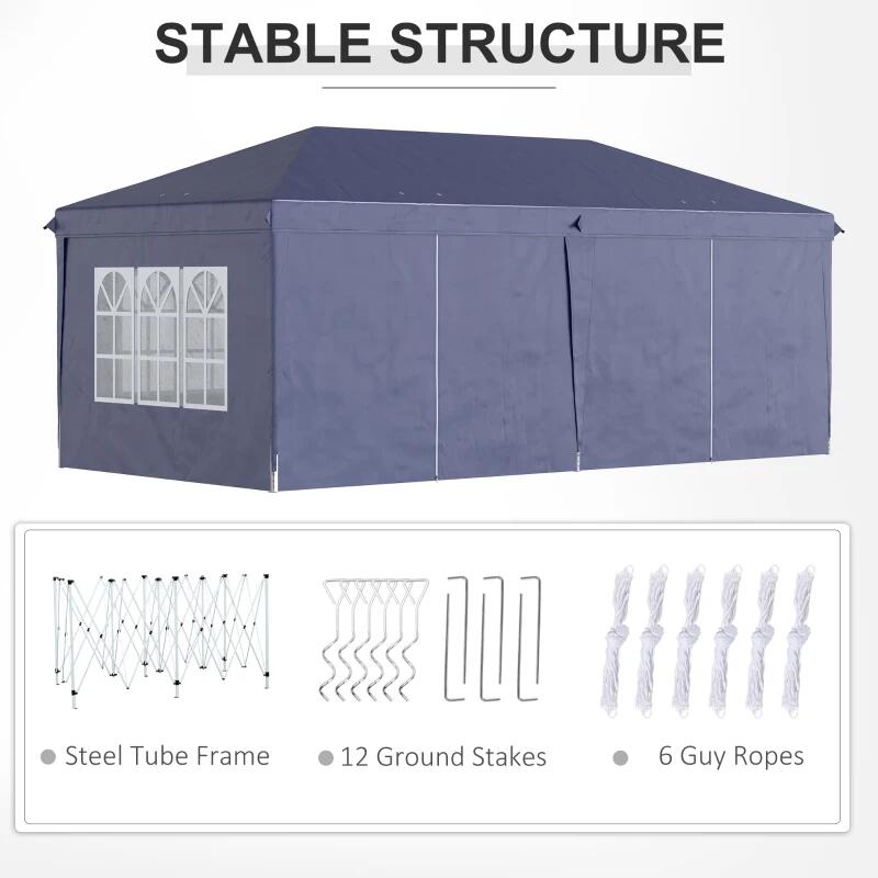 Kerti/kereskedelmi pavilon, Oxford anyagú fémváz, 6 fal, táskával, kék, 5,85x2,95x2,70 m