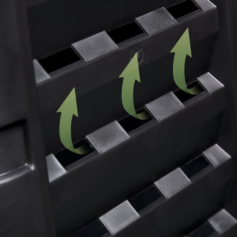 - A különleges forma egyenletes légáramlást biztosít, lehetővé teszi a komposzt öntözését és felgyorsítja a bomlási folyamatot