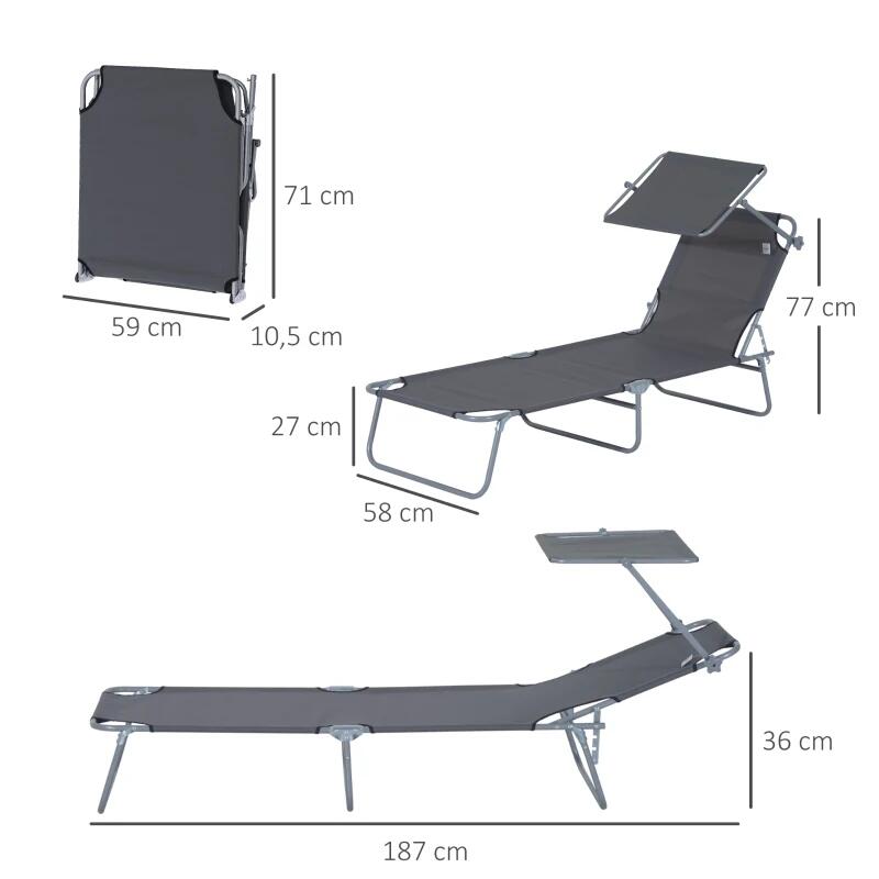 Kerti napozóágy, fém, napernyővel, Oxford anyag, szürke, 187x58x50 cm, Evelyn