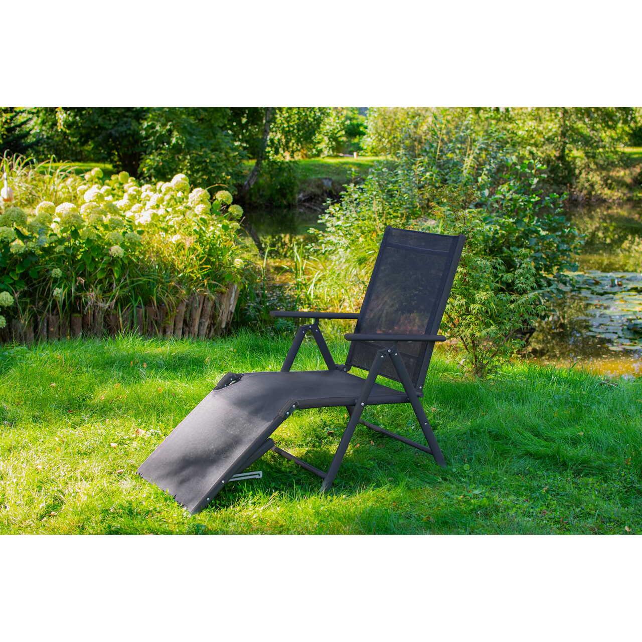 Kerti nyugágy, alumínium, hálóval, összecsukható, állítható, 110x52x102 cm, Jumi