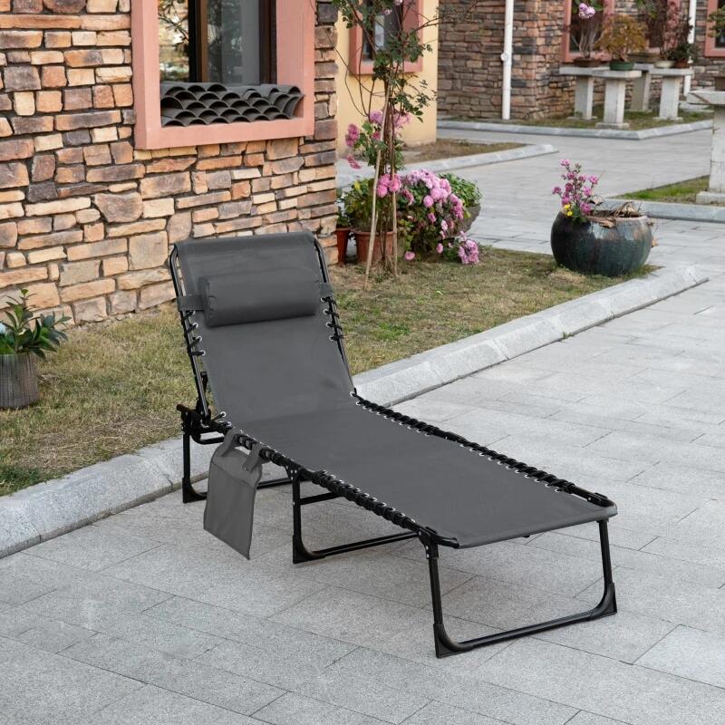 Kerti nyugágy, fém, állítható, fejtámlával, oldalzseb, szürke, 185x58x30 cm, Chan