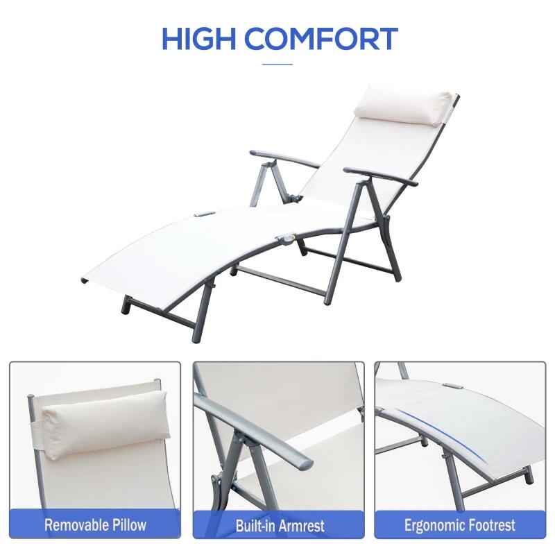 Kerti nyugágy, fém, összecsukható, állítható háttámlával, krémszínű, max 165 kg, 177x66x108 cm