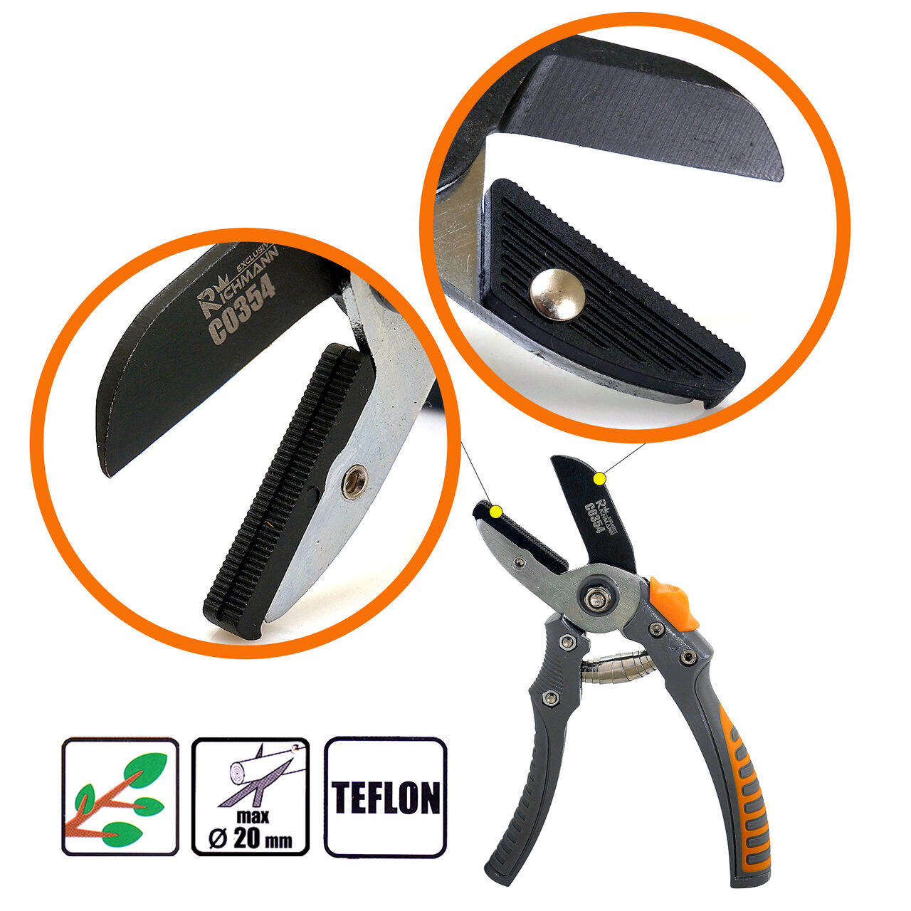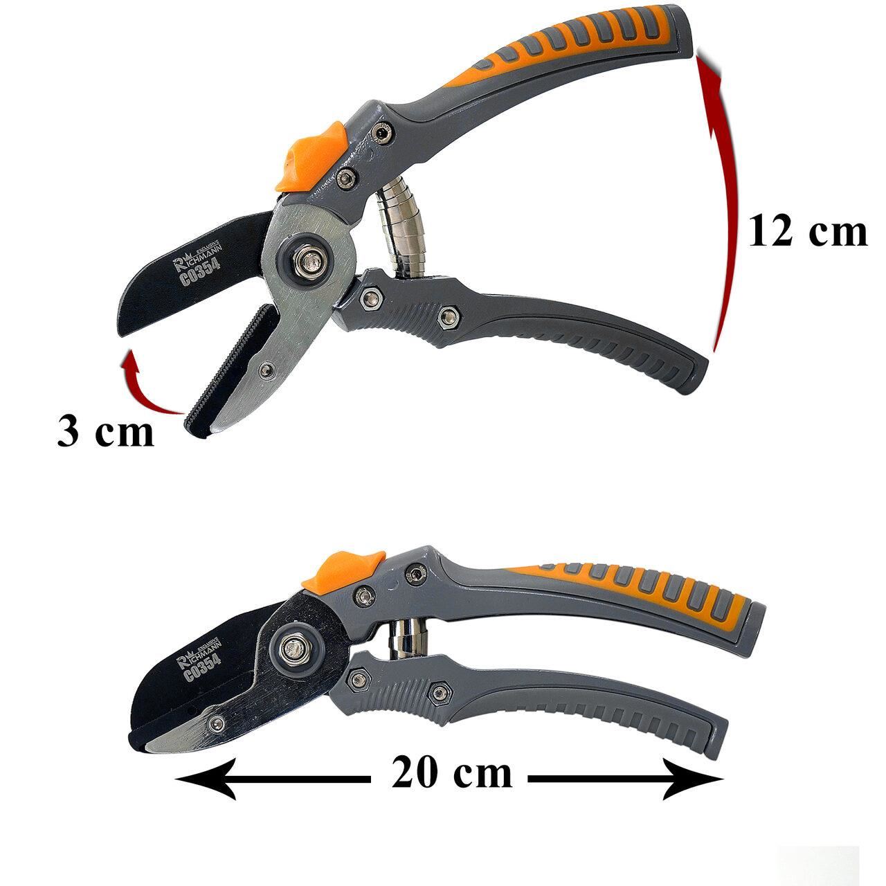 - KÖNNYEN VÁGJON, és TISZTA vágást kap, amely NEM bántja a növényeket, az ágakat, a bokorrózsákat, a szőlőt és a sövényt 200 mm-es üllő típusú kerti ollóval, teflonnal, SK5 acéllal.