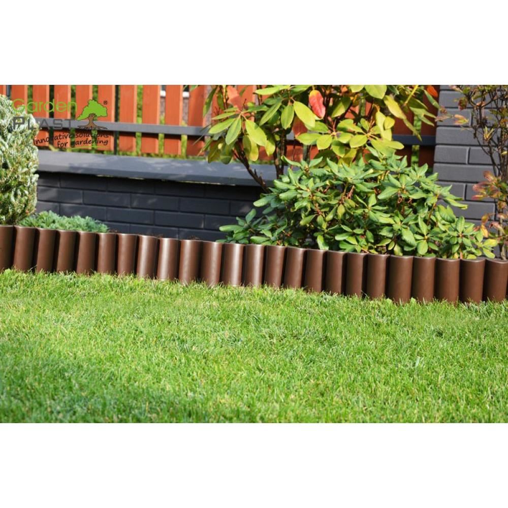 A kerti szegély műanyagból készült, hosszú ideig ellenáll a korróziónak.
