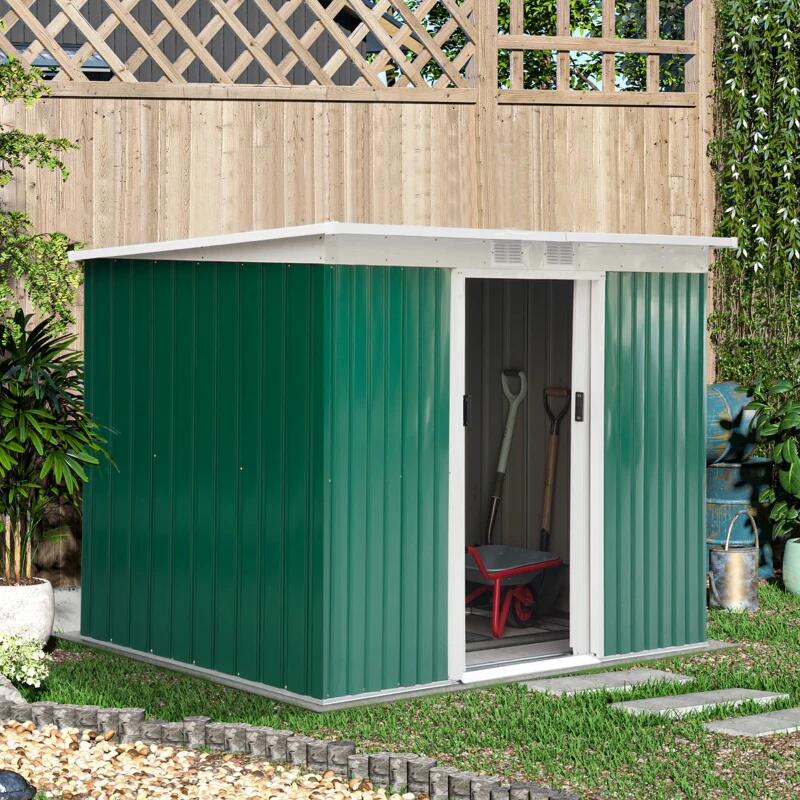Kerti szerszámtároló doboz, acél, zöld, 280x130x172 cm
