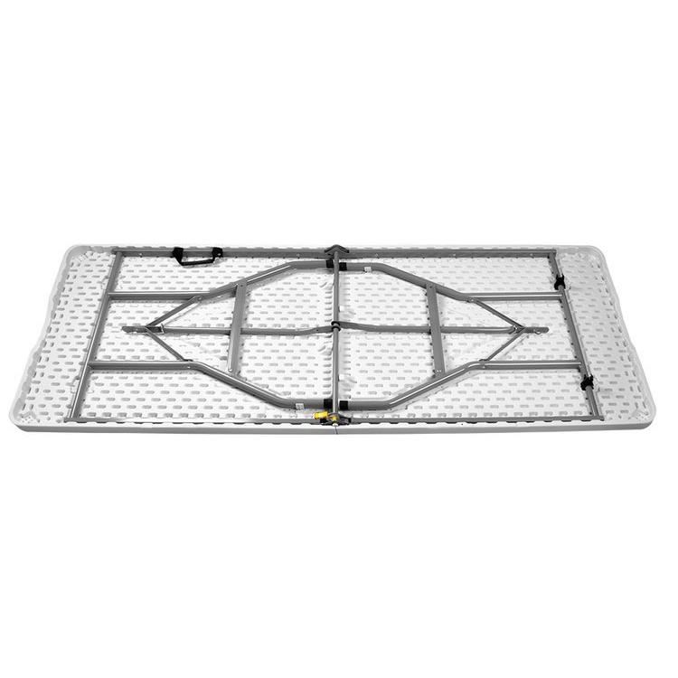 - TARTÓS - a kerti asztal rendkívül tartós és stabil acélszerkezettel rendelkezik, amely ellenáll a nagy terheléseknek és ellenáll a mechanikai sérüléseknek. Az acél porral van bevonva. Az asztallap a legjobb minőségű műanyagból készült. Rendkívül tartós és ellenáll az olyan nehéz időjárási viszonyoknak, mint az eső vagy a hó.