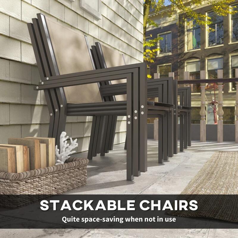 - A csomag 6 db széket is tartalmaz vendégei számára. Hálós ülésük biztosítja az optimális szellőzést, és figyelemre méltó kompakt méretükről és kis súlyukról. Könnyen szállíthatók és tárolhatók, mert a helytakarékosság érdekében egymás tetején tárolhatók.