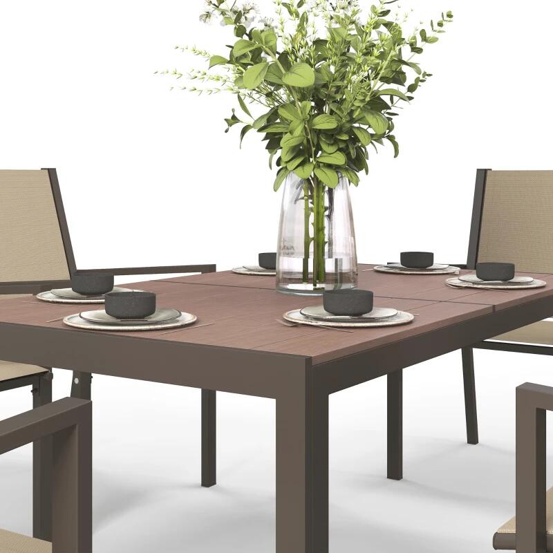 Kerti/terasz bútorkészlet, barna és barna, 1 asztal, 6 szék, Eszter