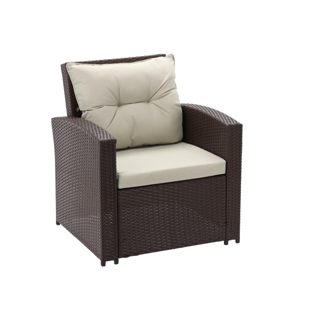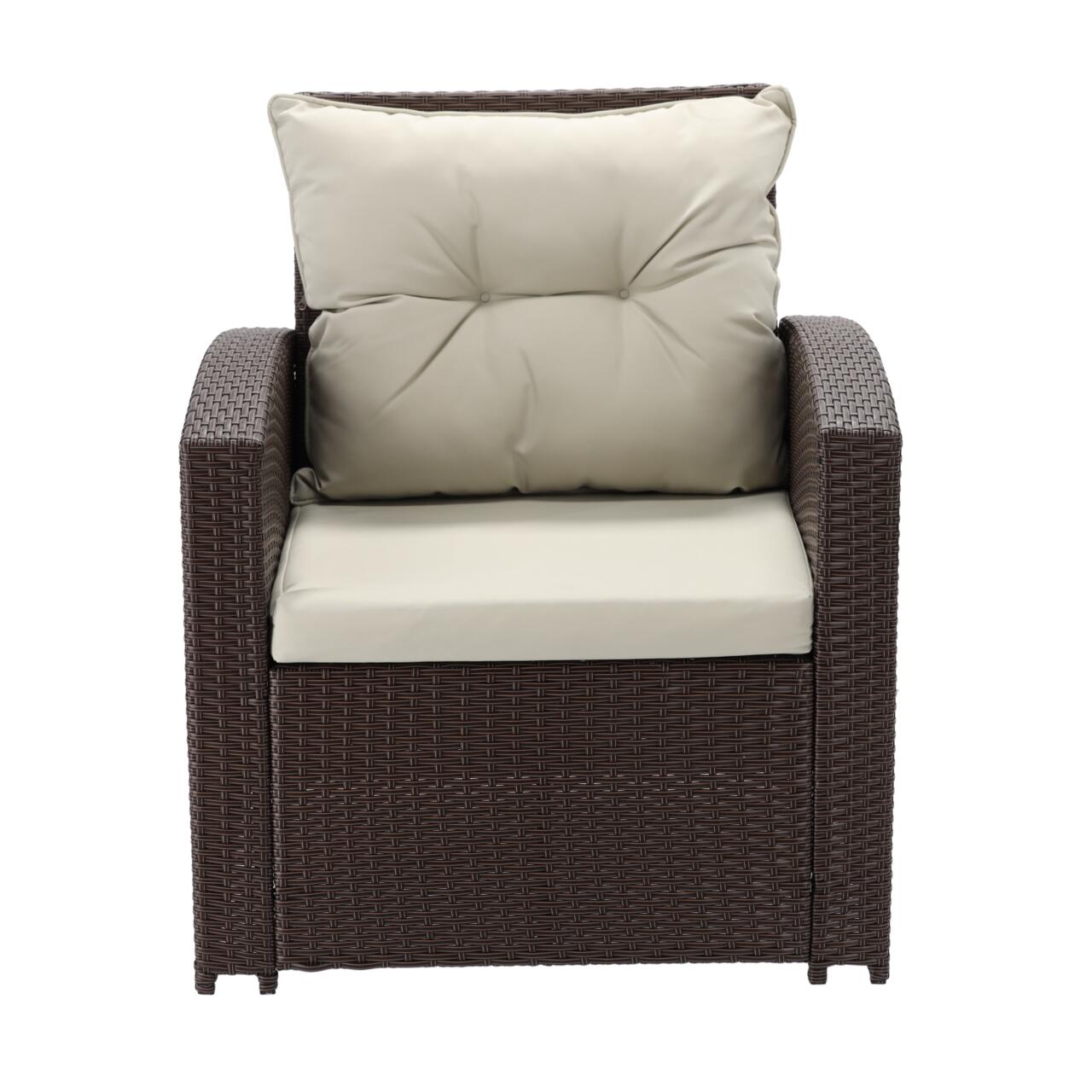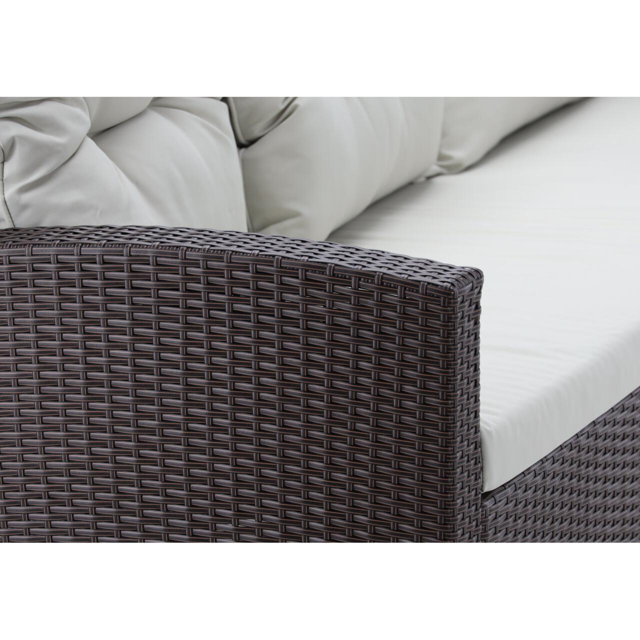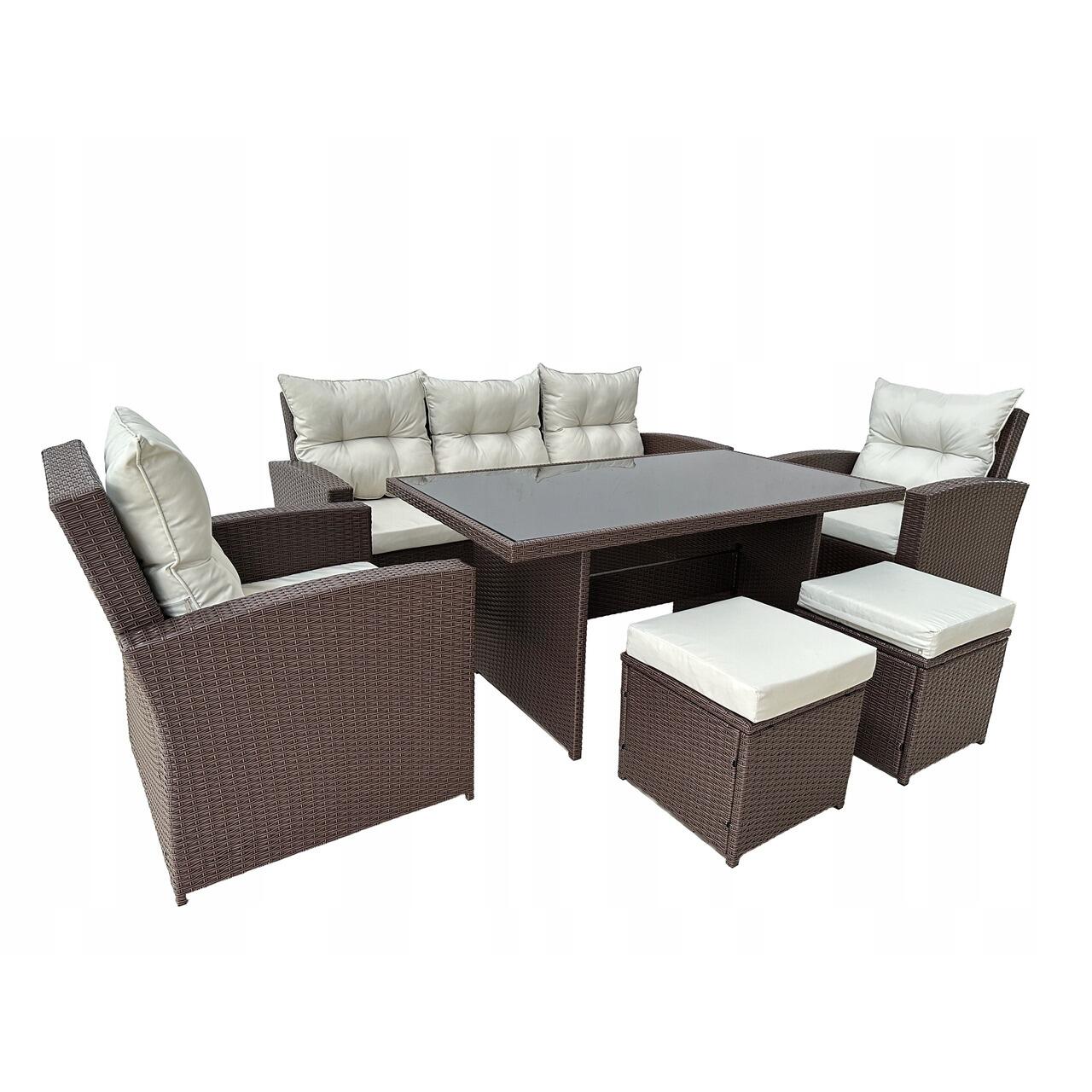 Kerti/terasz bútorkészlet, barna és bézs, 1 asztal, 2 szék, 2 zsámoly, 1 kanapé, Dolores