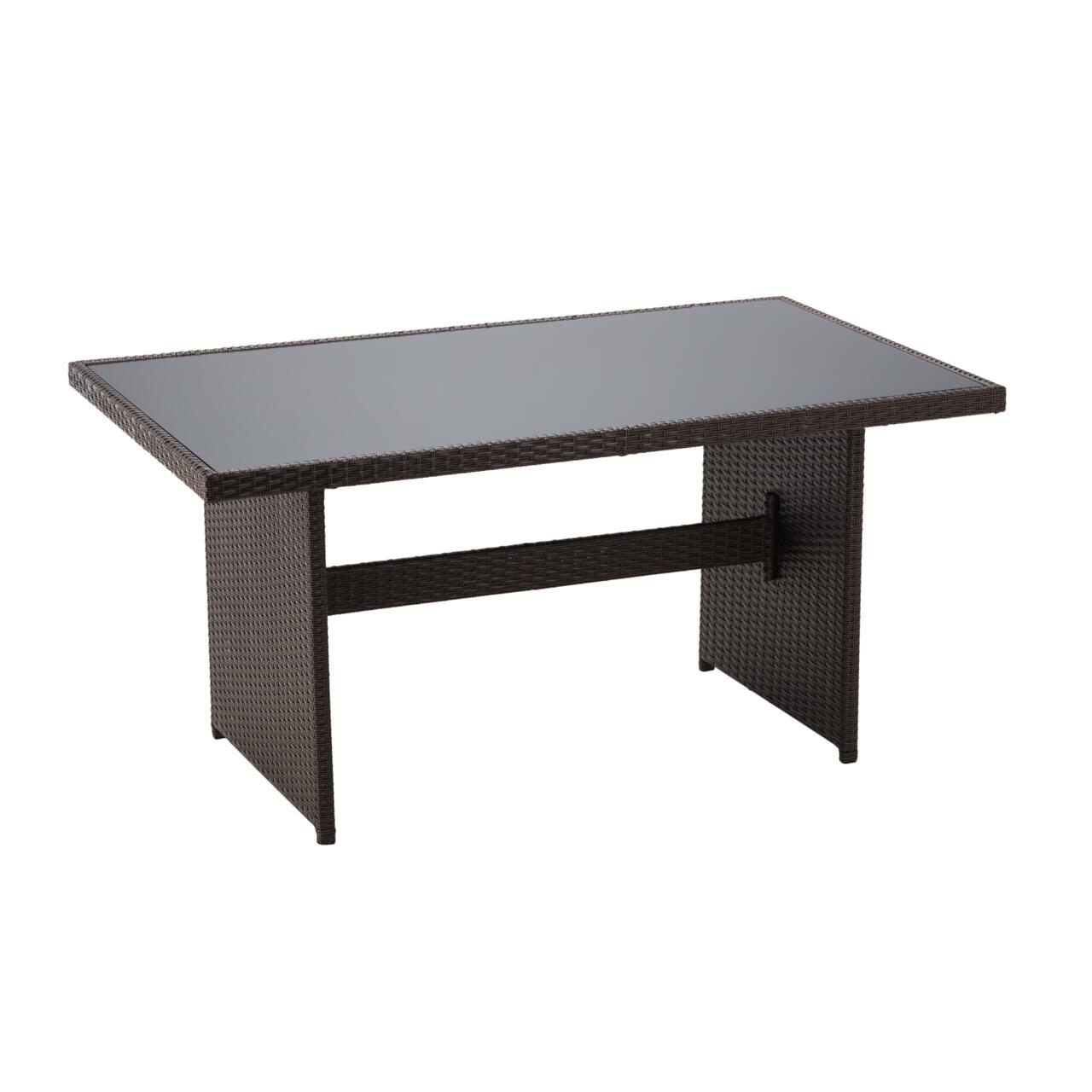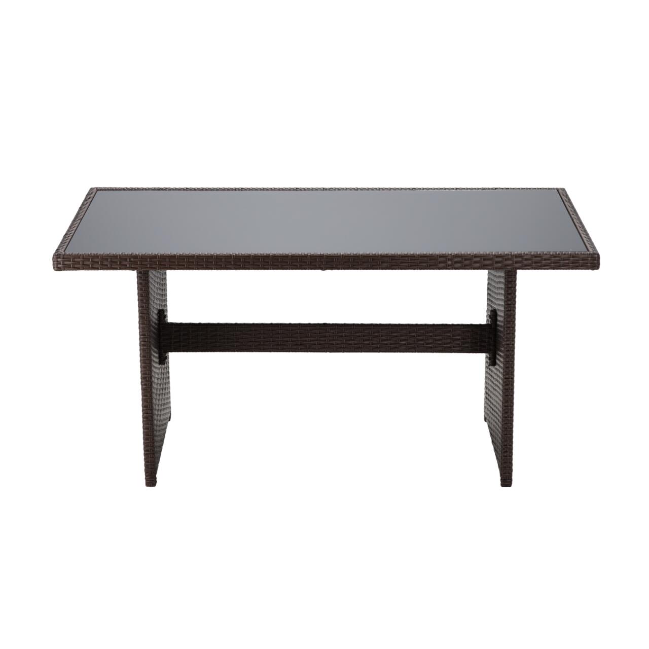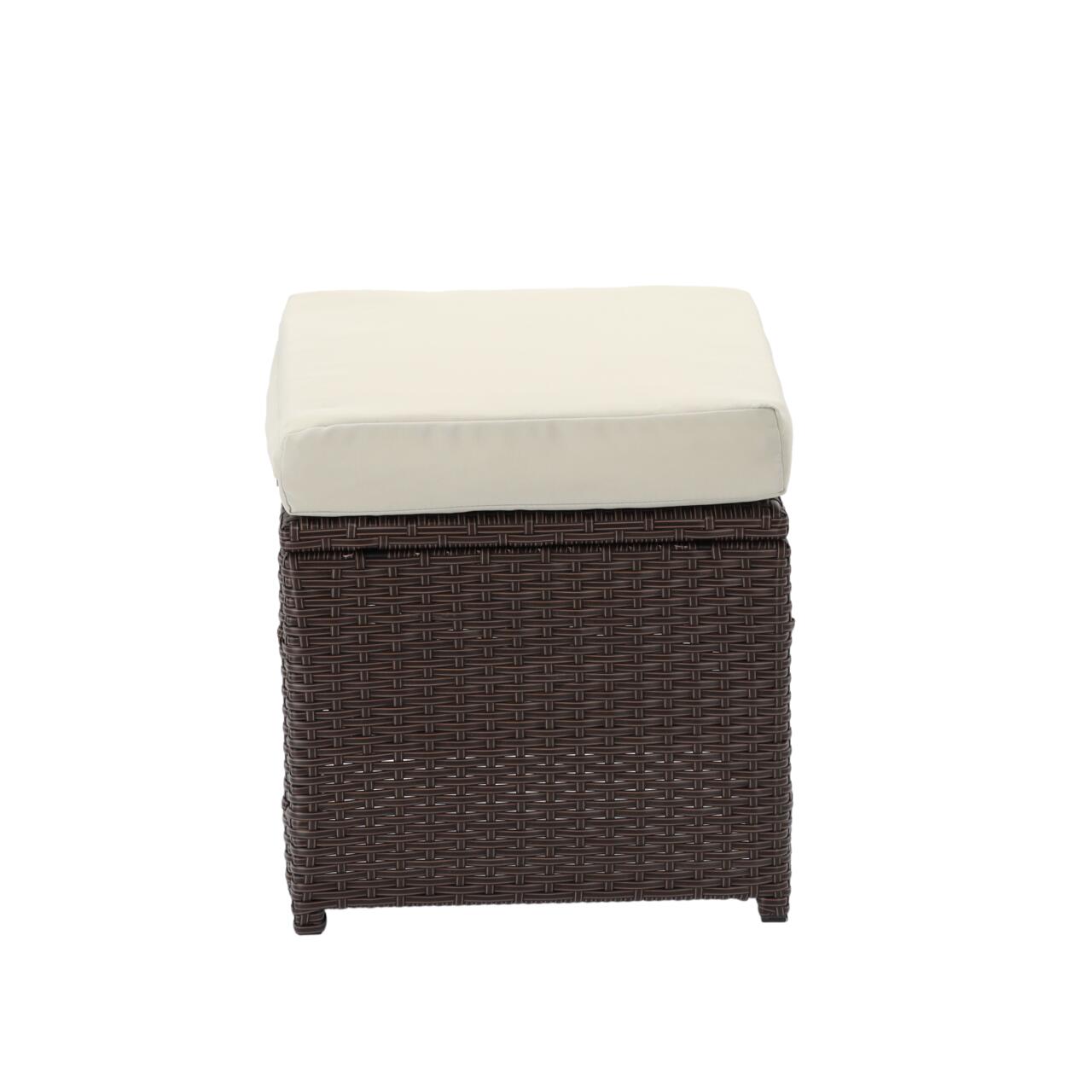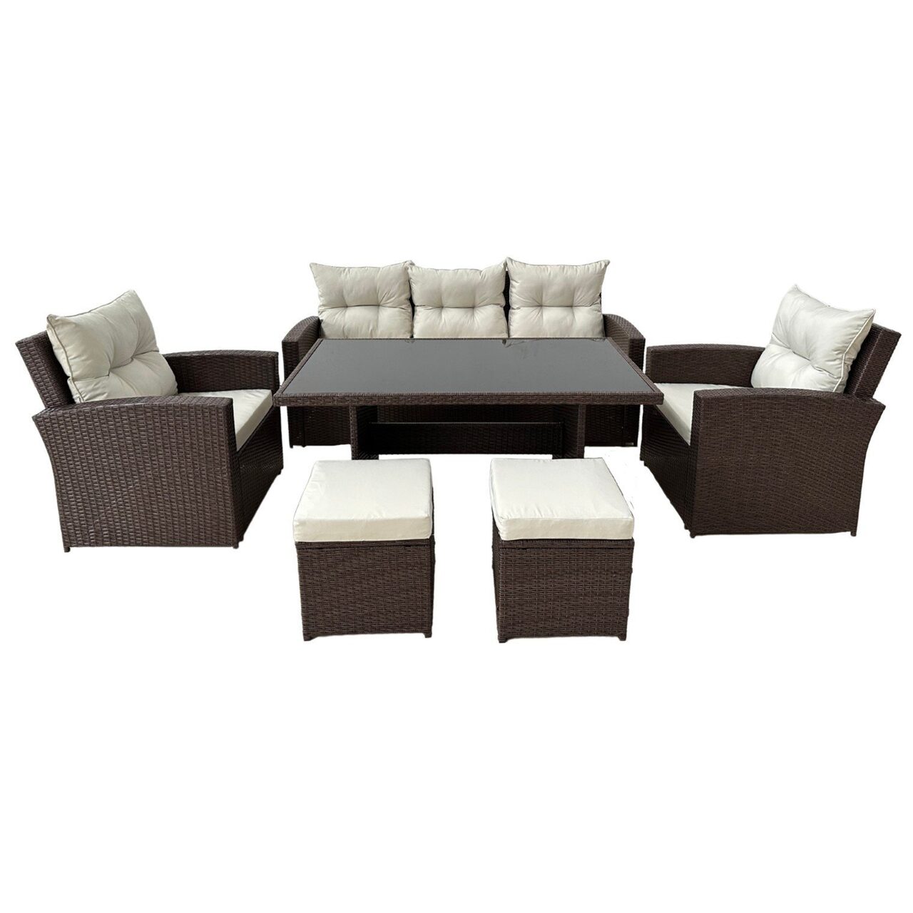 Kerti/terasz bútorkészlet, barna és bézs, 1 asztal, 2 szék, 2 zsámoly, 1 kanapé, Dolores