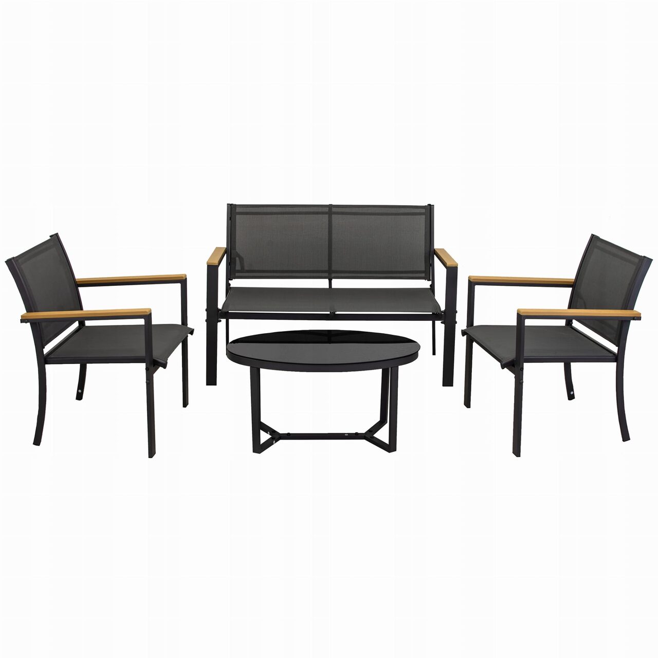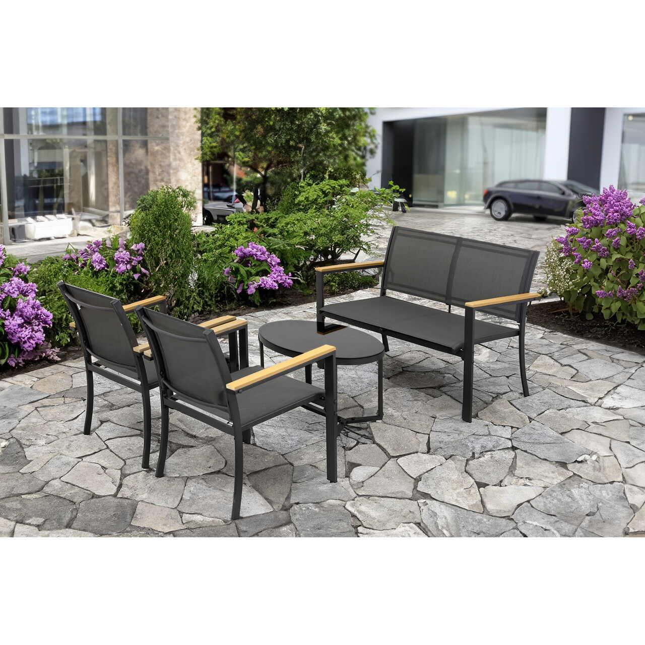 Kerti/terasz bútorkészlet, fekete és natúr, 1 asztal, 2 szék, 1 kanapé, Imala