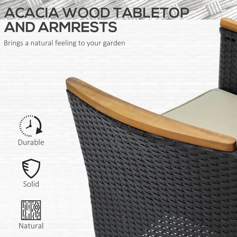 Kerti/terasz bútorkészlet, PE rattan, acél, fekete és bézs, 1 asztal, 6 fotel, Adelia