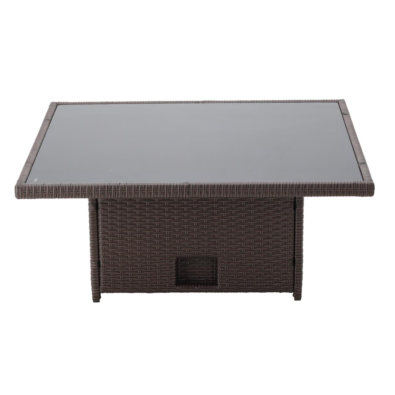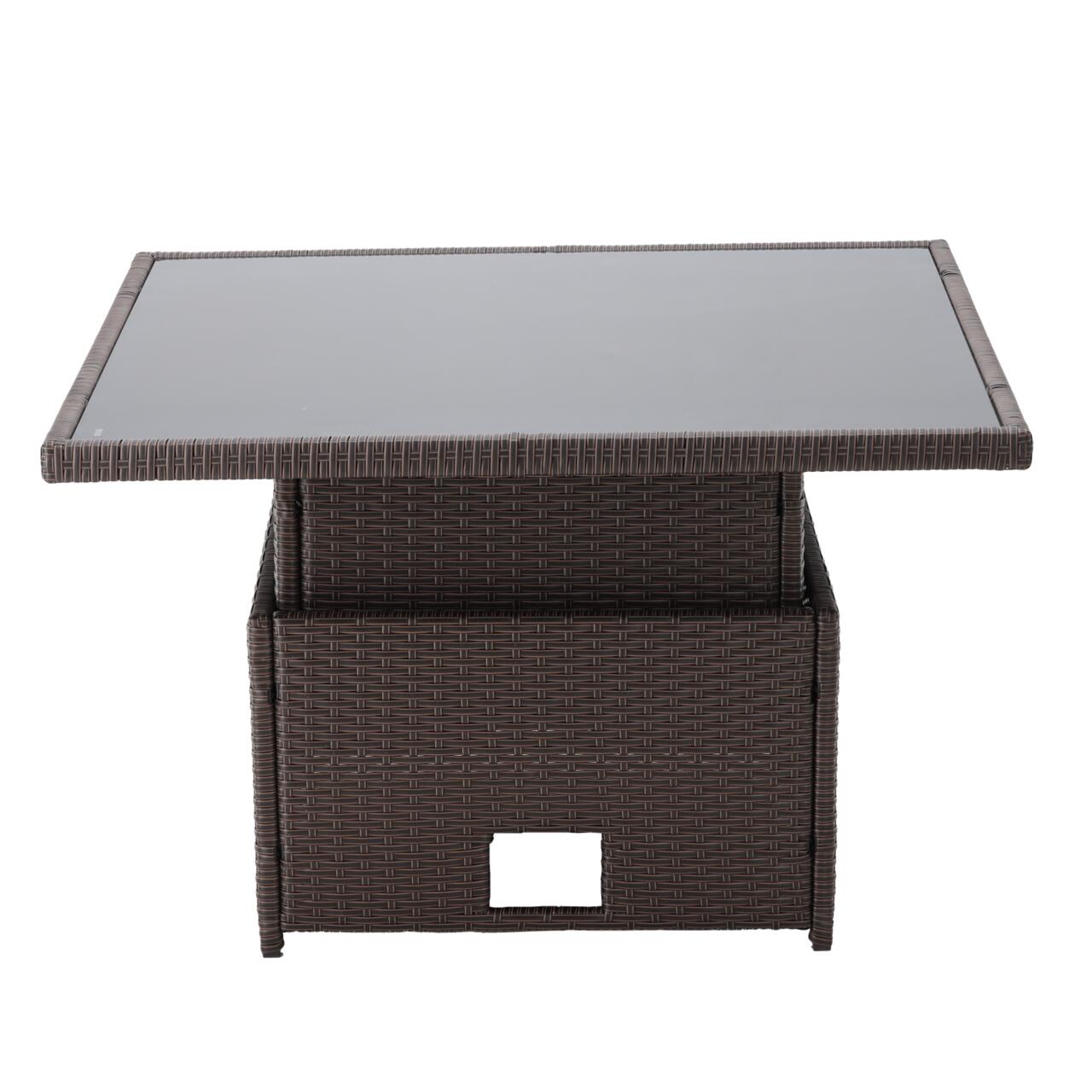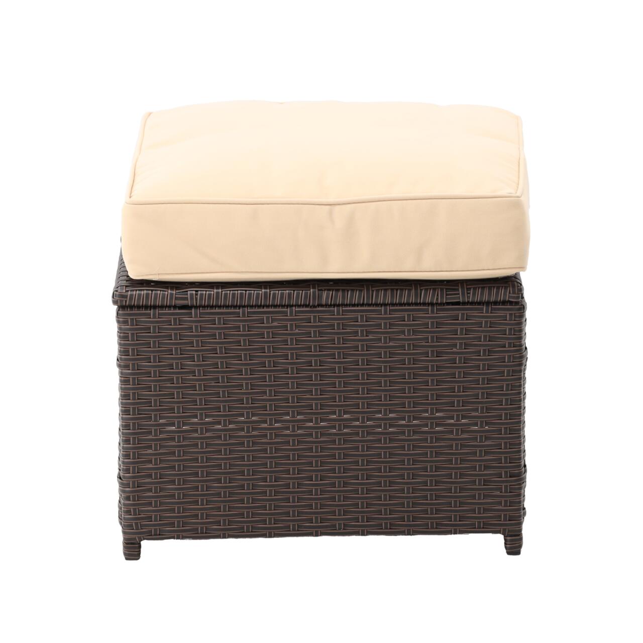 Kerti/terasz bútorkészlet, polyrattan, barna és krémszínű, 1 asztal, 2 zsámoly, 1 sarokkanapé, Chomik, Cassy
