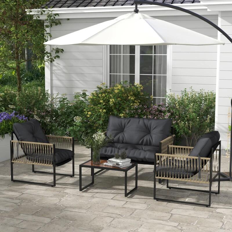 - Tökéletes bútorkészletet képvisel kertedbe vagy teraszodba! Ez minden bizonnyal az a hely lesz, ahol családjával vagy barátaival pihenhet a szabad levegőn, kedvenc itala mellett. Tartalmaz egy kanapét, két fotelt és egy hozzáillő dohányzóasztalt.
