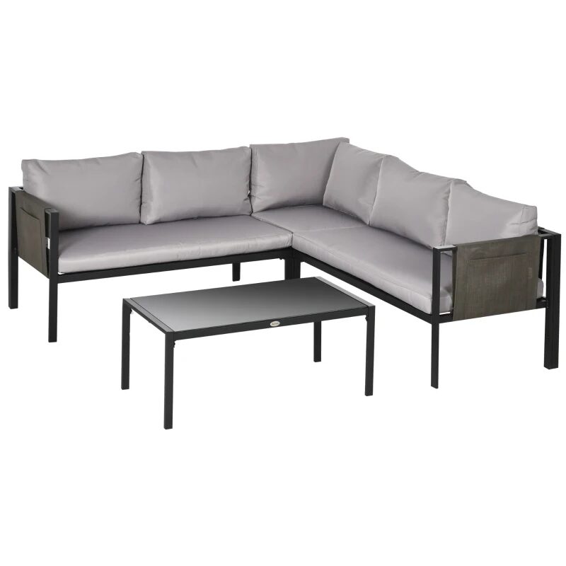 Kerti/terasz bútorkészlet, szürke és fekete, 1 asztal, 2 kanapé, Kayden