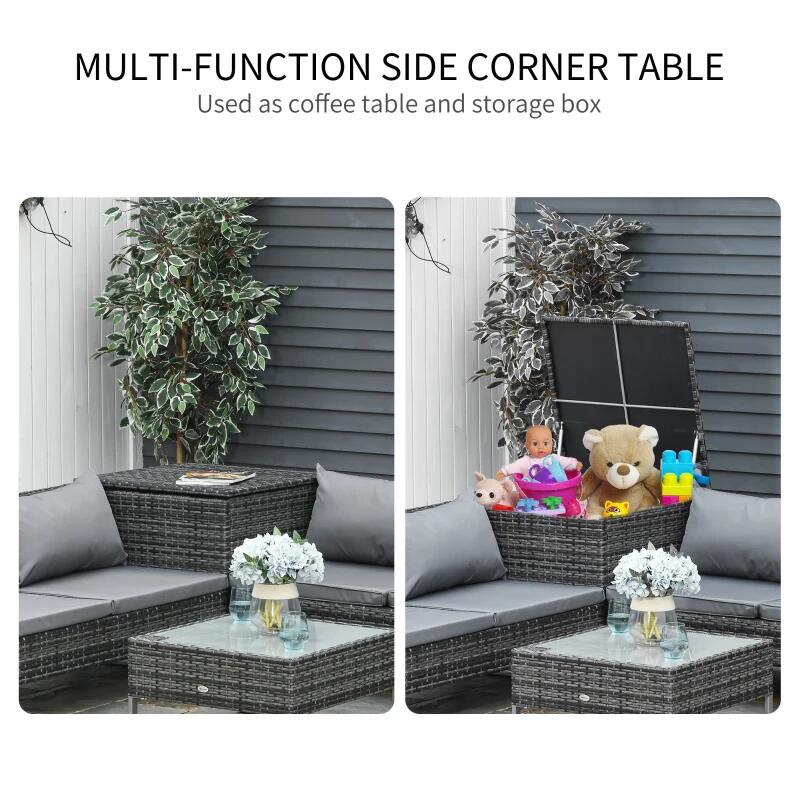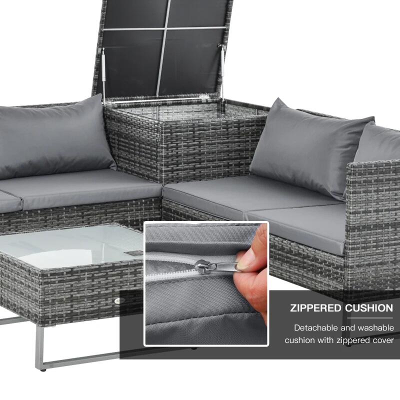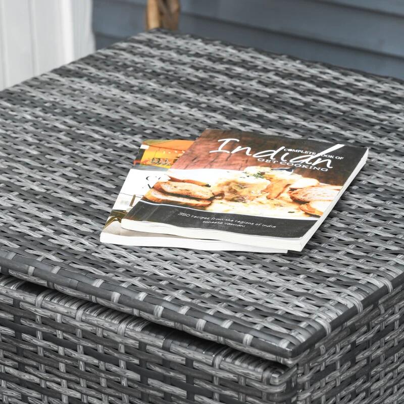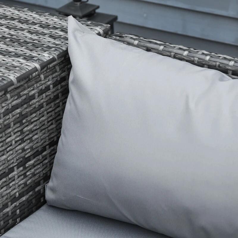Kerti/terasz bútorkészlet, szürke, szintetikus rattan, 1 asztal, 2 kanapé, 1 láda, Cassidy
