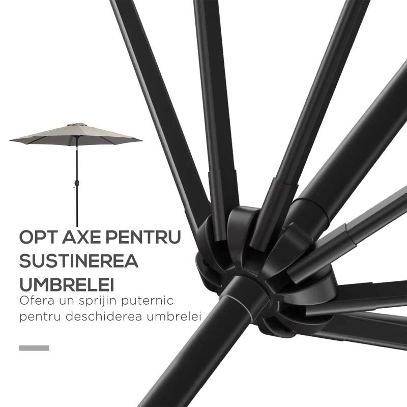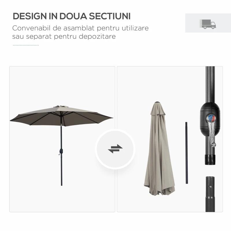 Kerti/terasz esernyő, dönthető, fogantyús, szürke, 300 cm