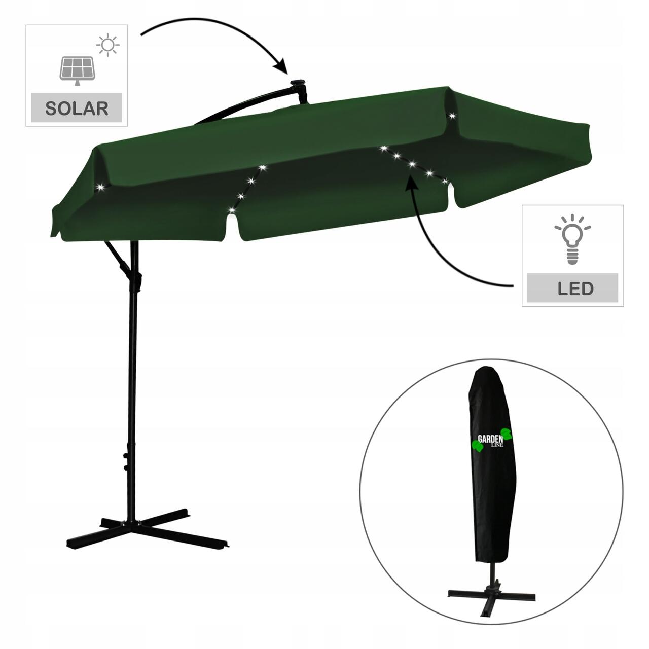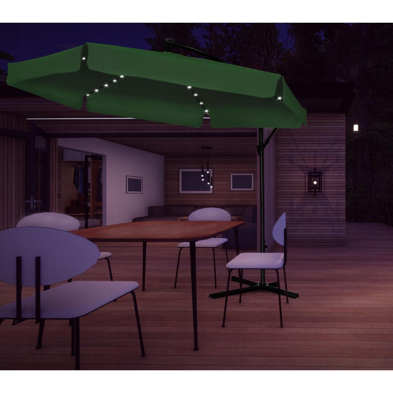 Kerti/terasz esernyő LED-es, Chomik, banáncsuklós, zöld, 300 cm
