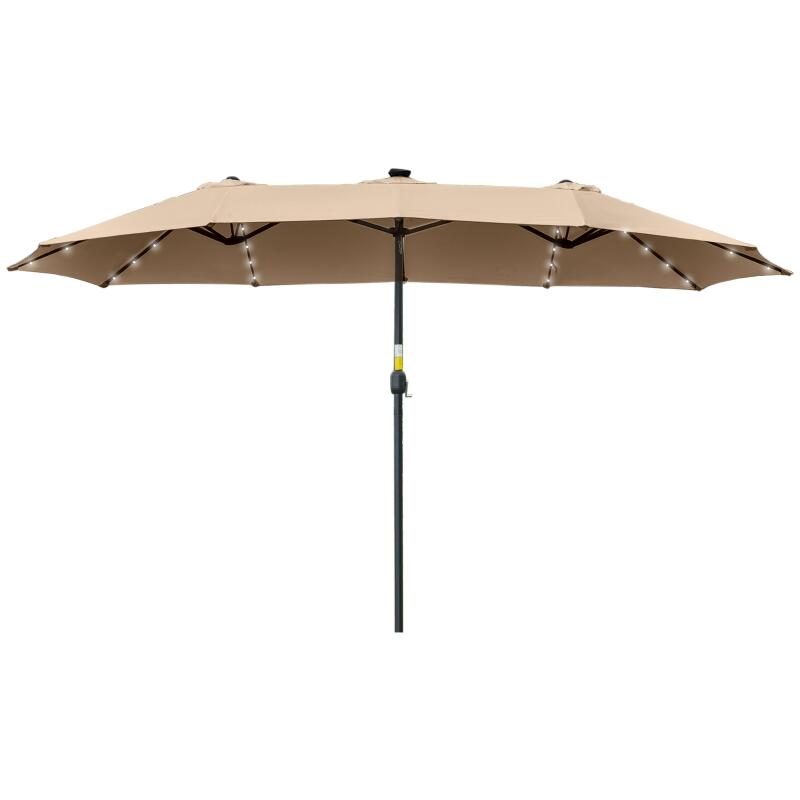 Kerti/terasz esernyő, napelemes LED, téglalap alakú, khaki, 265x450 cm