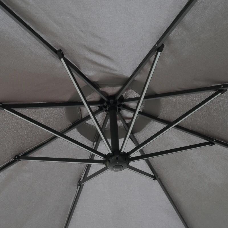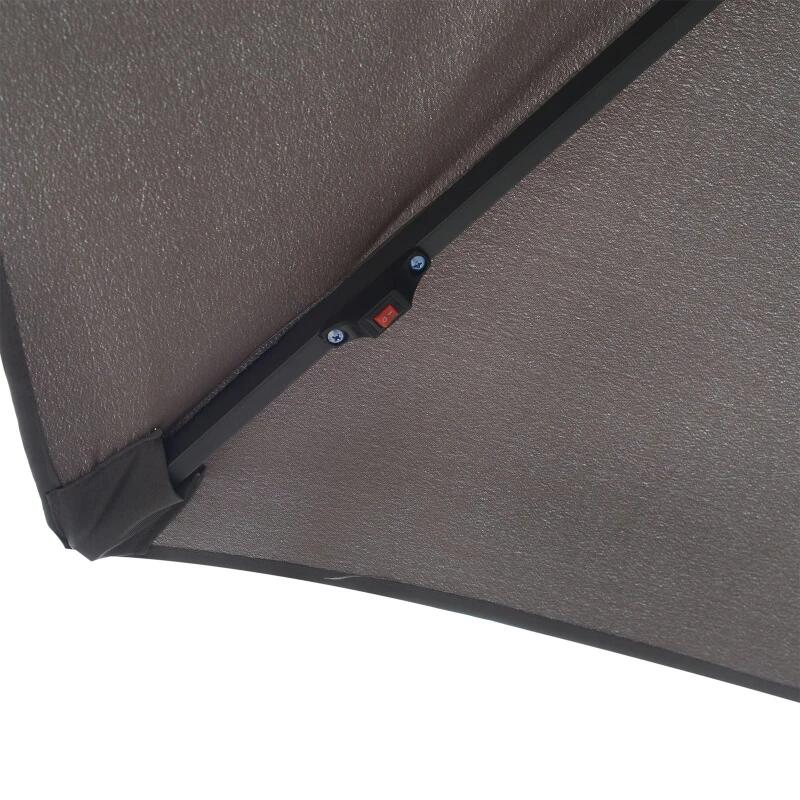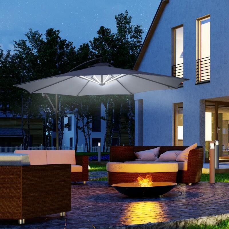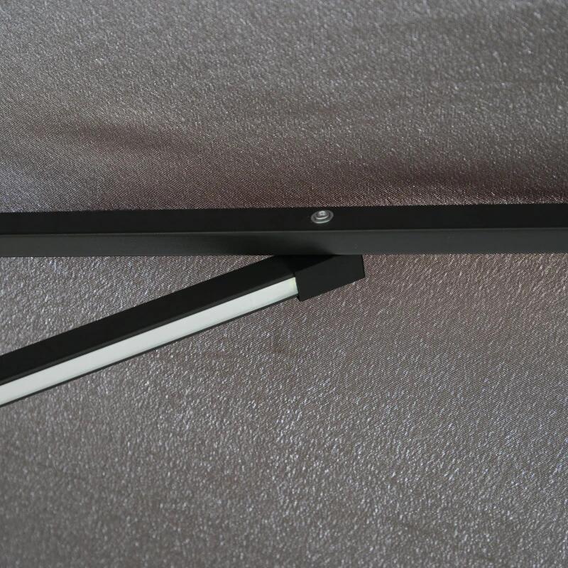 Ez az esernyő UV-álló poliészter huzatának köszönhetően hatékonyan véd a naptól. A beépített LED lámpákkal a kertben vagy a teraszon élvezheti az estét. A tömör acél és alumínium szerkezet hosszú távú stabilitást és tartósságot biztosít.