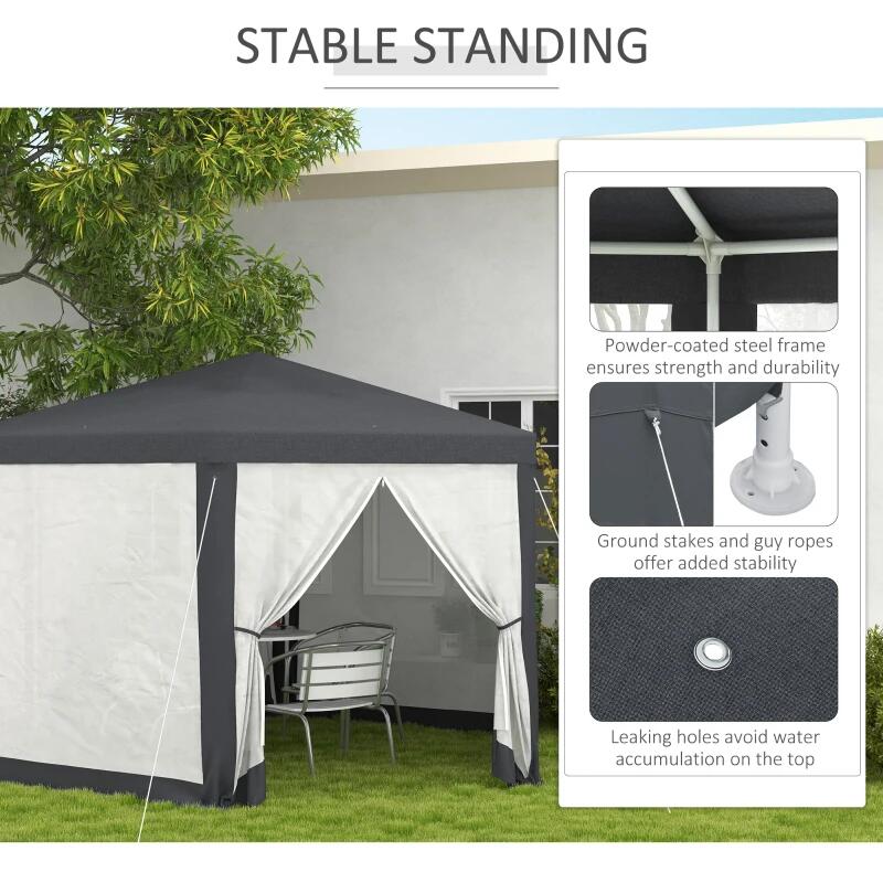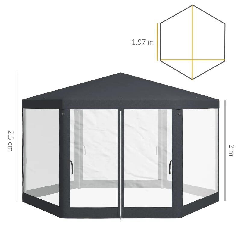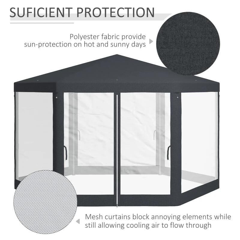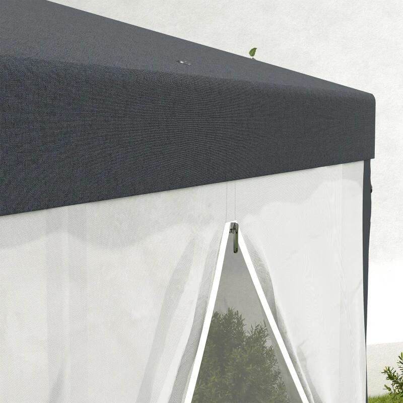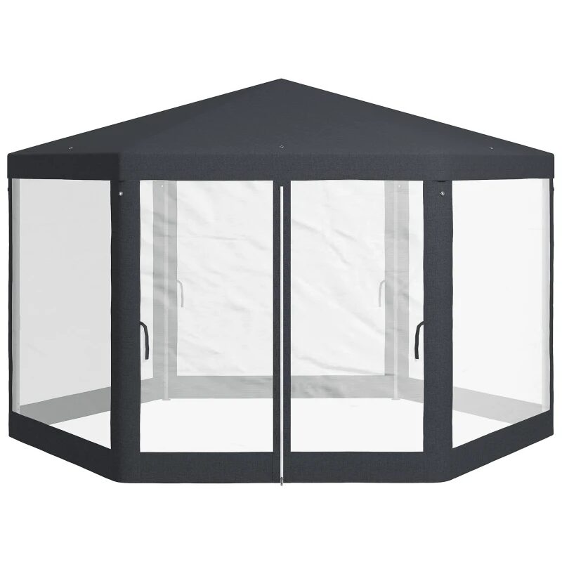 Kerti/terasz pavilonja, fém vázas, szúnyoghálóval, sötétszürke, 3,94x3,94x2,5 m