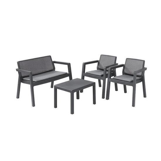 Kerti bútorkészlet/terasa, grafit, 1 asztal, 1 pad, 2 szék, Emily