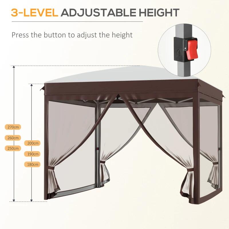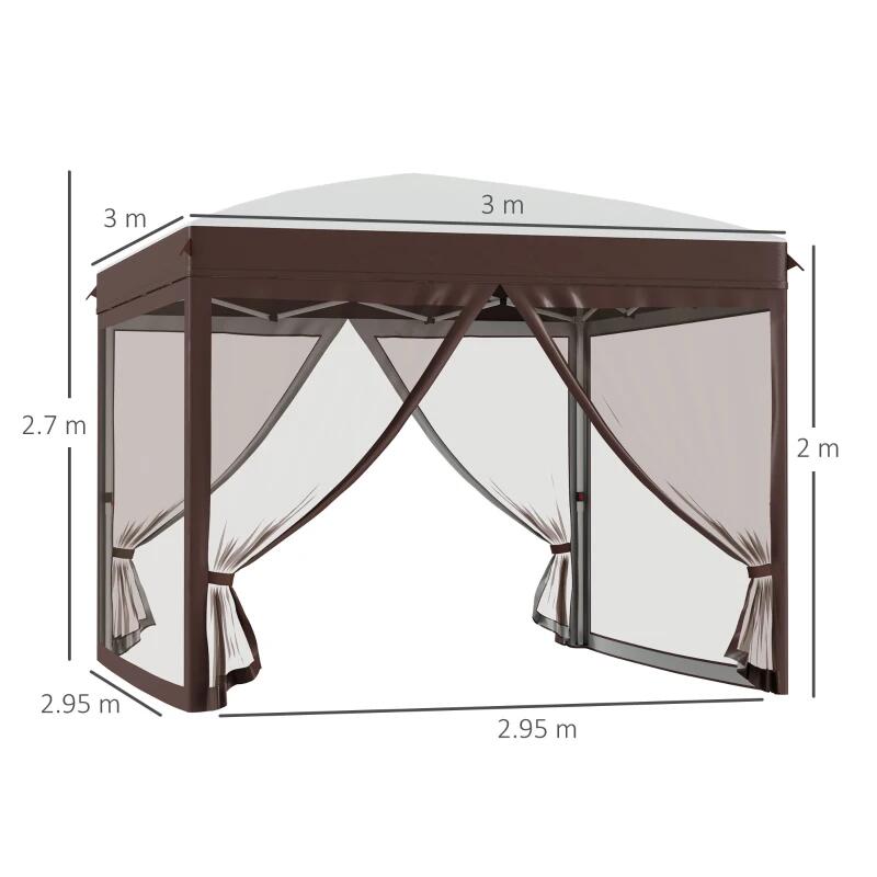 Kerti/teraszos pavilon, fémvázas, rovarhálóval, állítható magasságú, barna, 3x3x2,7 m