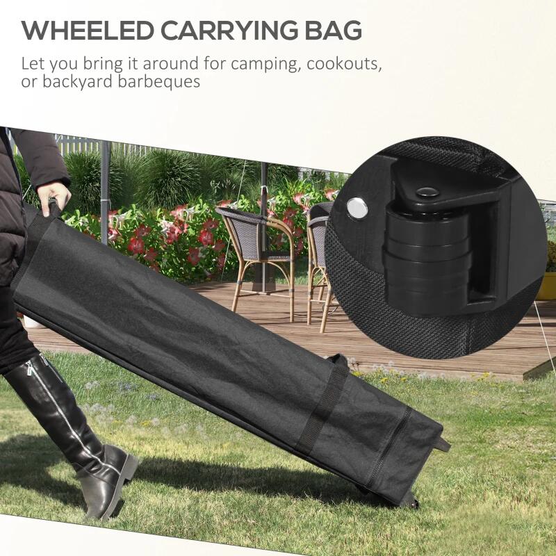- A csomag tartalmaz egy kerekes táskát, amely mind a szállítást, mind a tárolást jelentősen megkönnyíti. Így ezt a szerelvényt bárhová telepítheti, ahol szüksége van rá, akár piknikre vagy kempingre is. A pavilon kompaktan összecsukható, így kényelmesen tárolható vagy mozgatható.