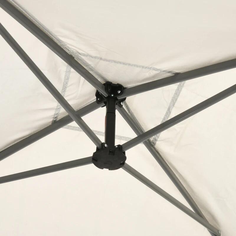 - Az összeszerelés egyszerű és gyors. Húzza ki a keretet, helyezze rá a ponyvát, rögzítse az oszlopokat, és rögzítse az anyagot az egyes oszlopok alján a mellékelt kézikönyvben található utasítások szerint.