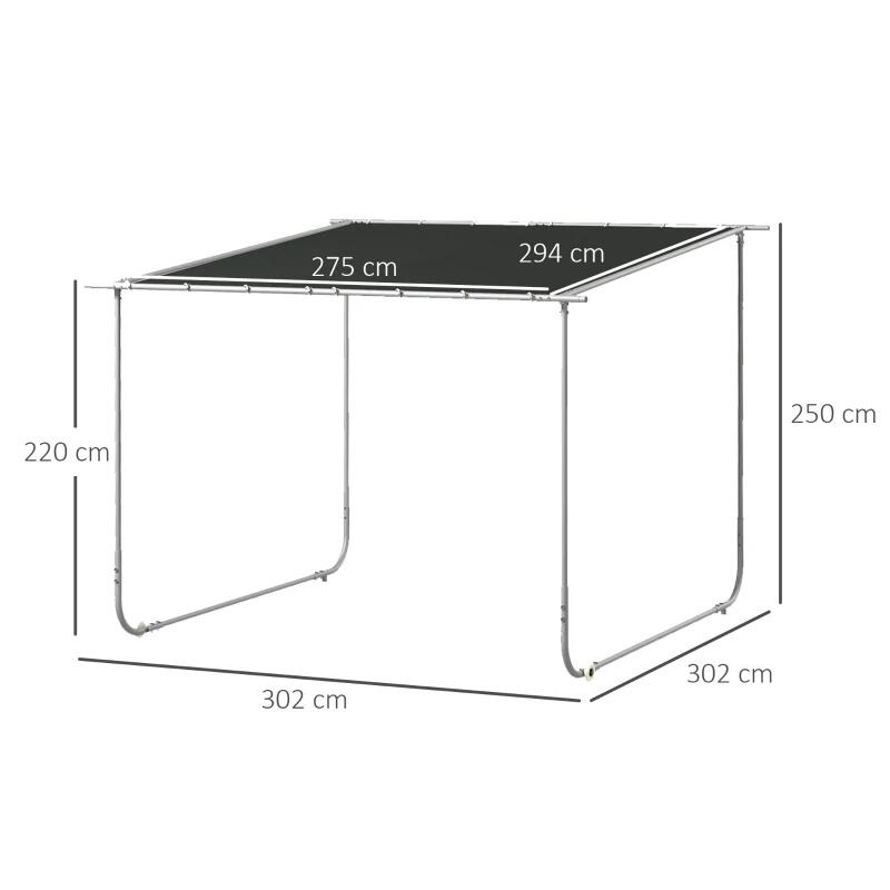 Kerti/teraszos pavilon, kerekekkel, fém kerettel, összecsukható, fekete, 3,02x3,02x2,5 m