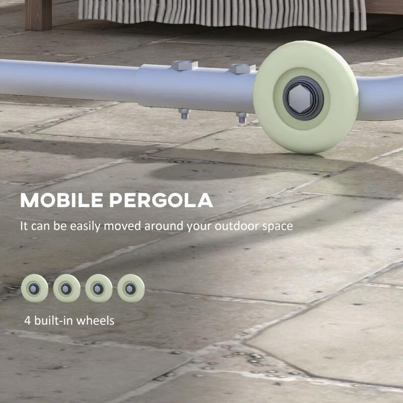 - A beépített kerekekkel felszerelt pergola igény szerint könnyedén mozgatható az udvar vagy a kert terében.